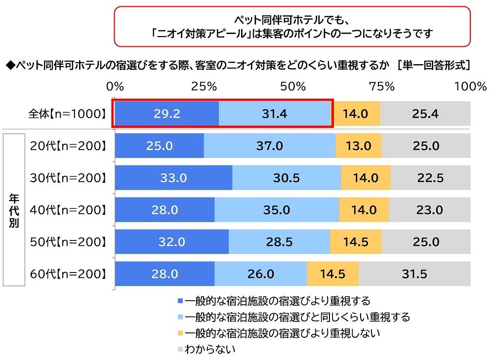 「ペット同伴可ホテルの宿選びをする際、客室のニオイ対策を一般的な宿泊施設の宿選びより重視する」29%