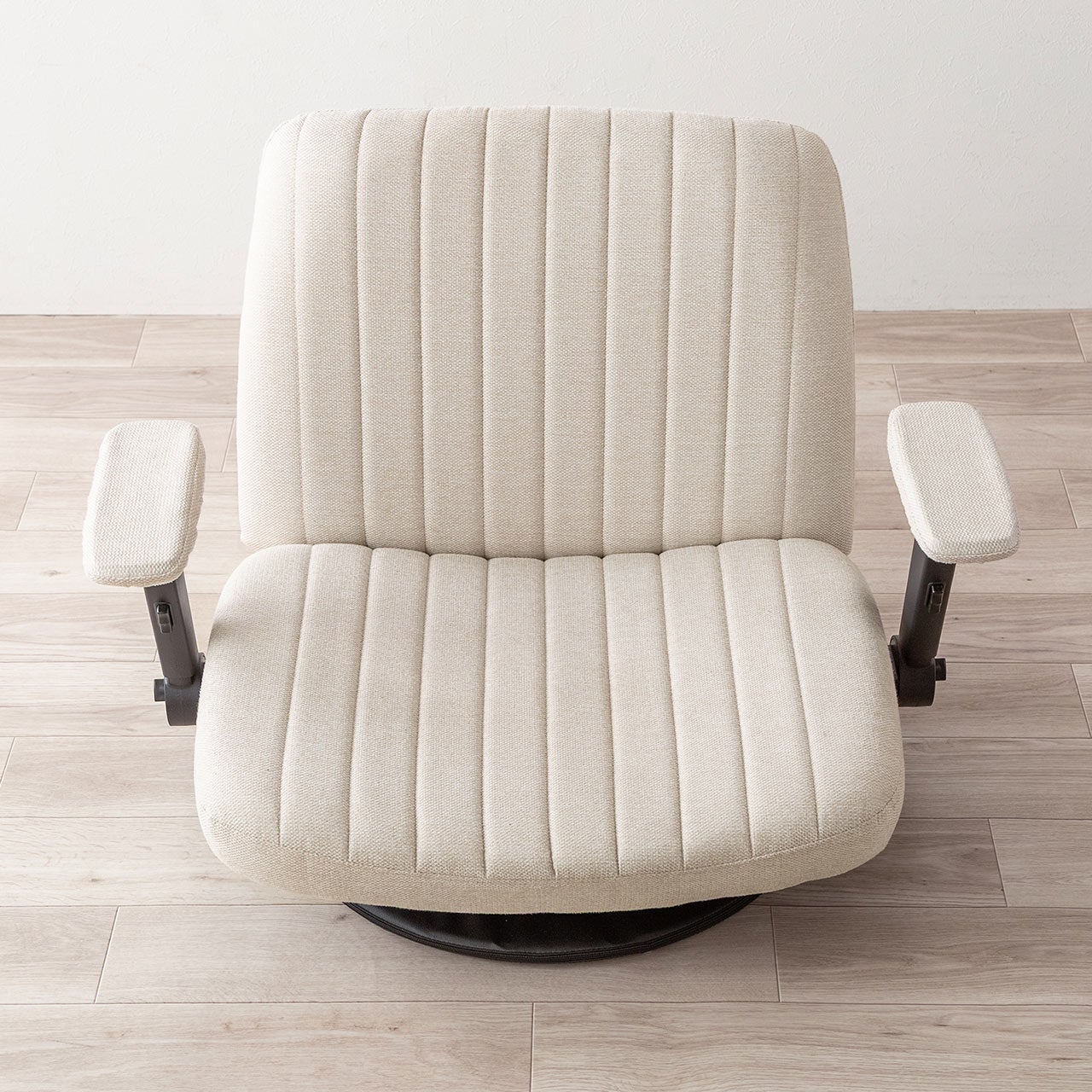 座面には回転盤を搭載しており、座ったままでもスムーズに向きを変えることができます。テレビを見る方向を変えたり、周囲の物を取る動作も楽に行えるため、日常の動作がより快適になります。リビングでのくつろぎ時間から作業スペースまで幅広く活躍します。
