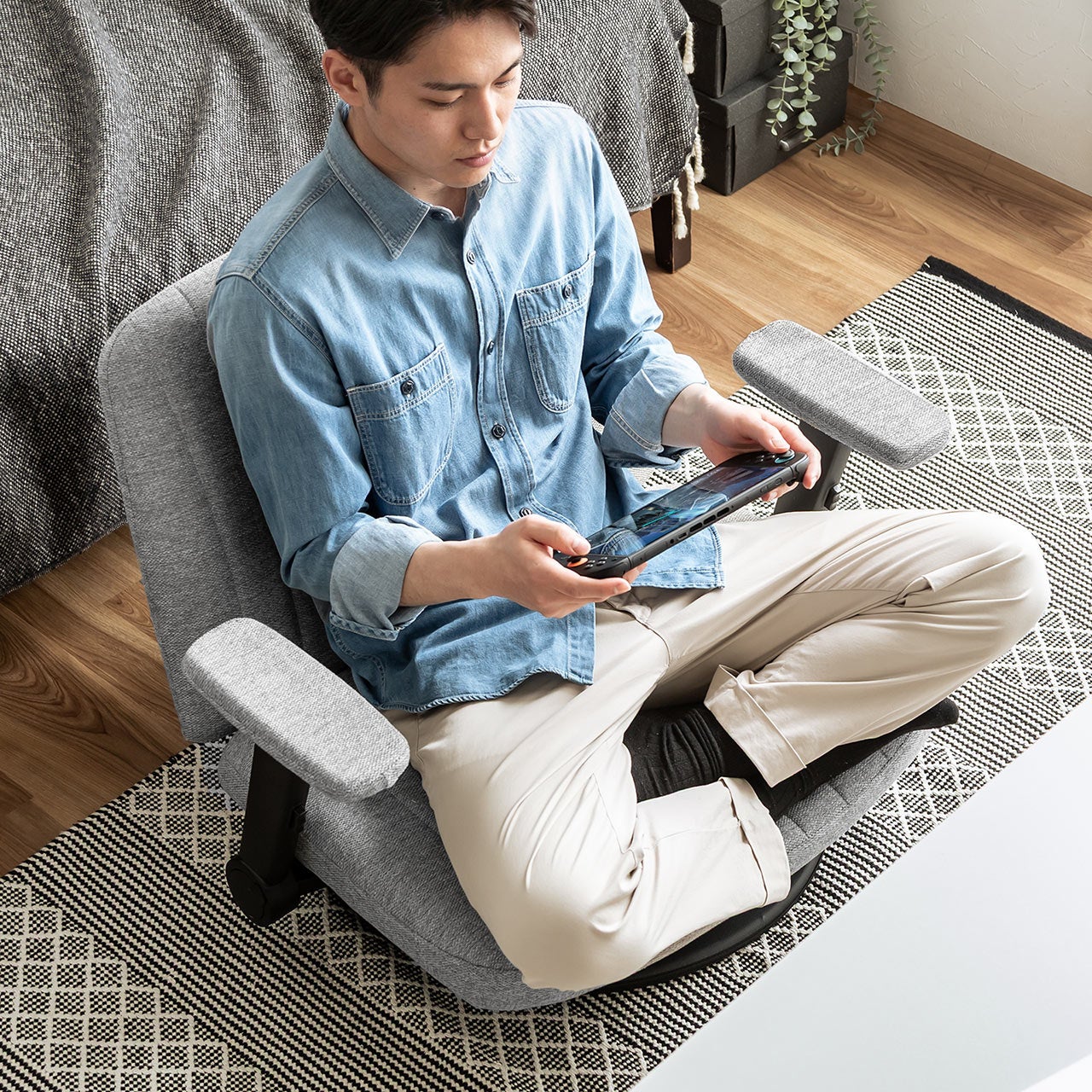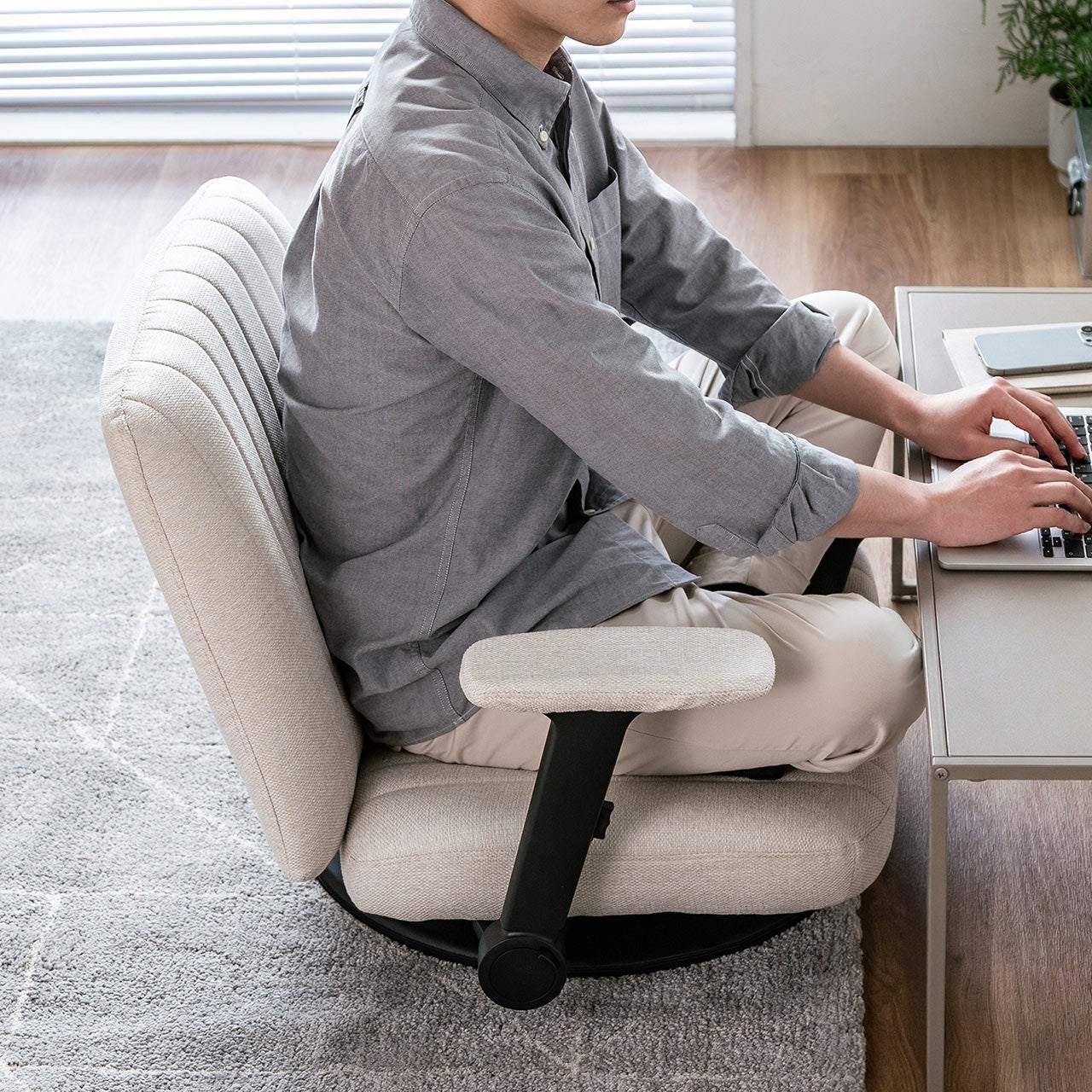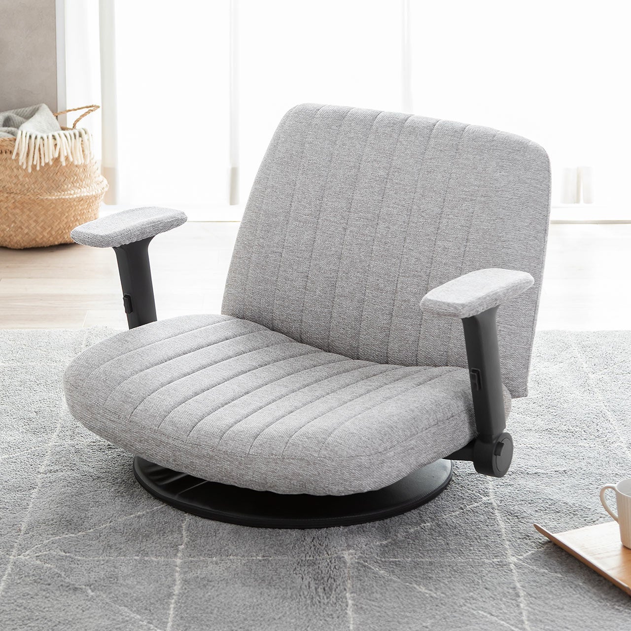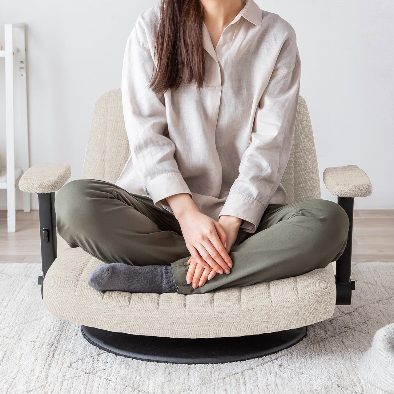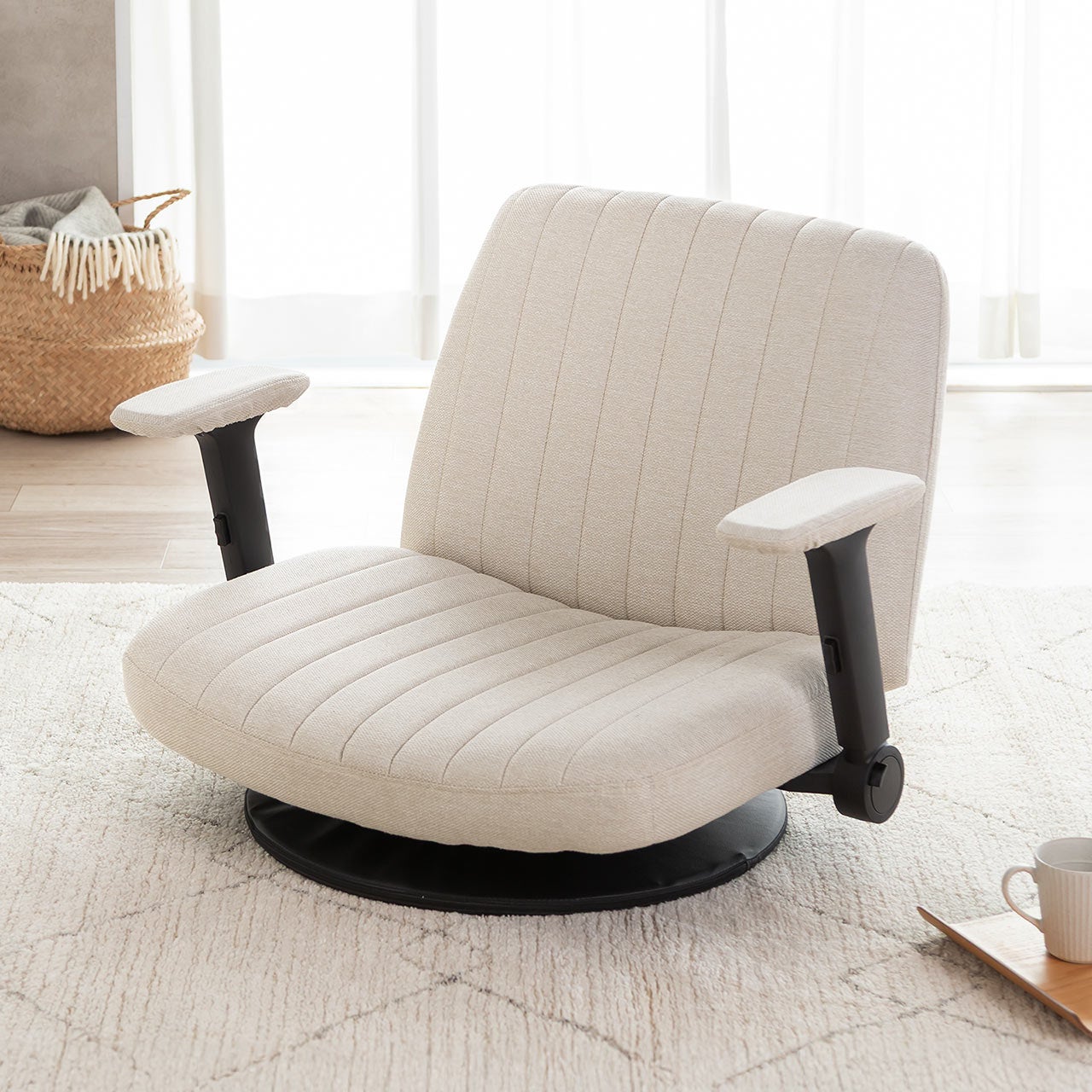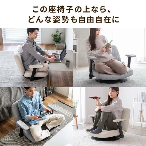 あぐら座椅子 幅広座椅子 3Dアームレスト 肘跳ね上げ 360°回転