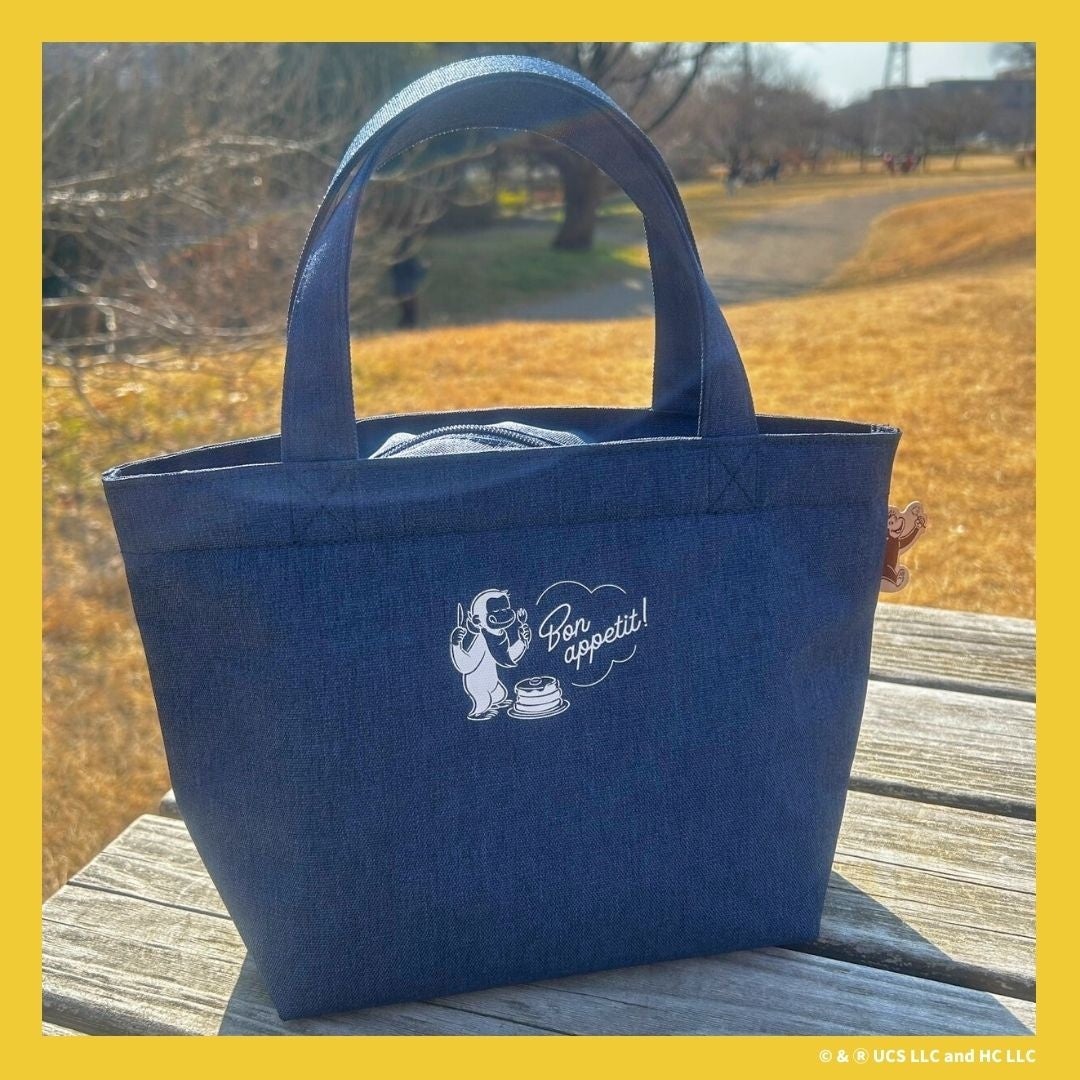 デニム生地のかわいい保冷バッグ!サイドにはひょっこりのぞくジョージも!