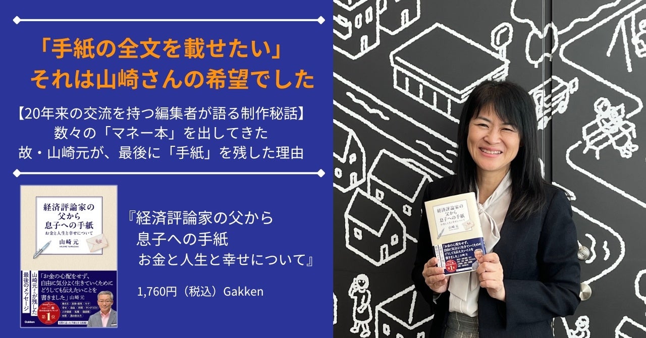 株式会社 学研ホールディングス(東京・品川/代表取締役社長:宮原博昭)のグループ会社、株式会社 Gakken(東京・品川/代表取締役社長:五郎丸徹)は、2024年2月15日(木)に『経済評論家の父から息子への手紙』(著:山崎元)を発売します。発売を記念して、本書の誕生から制作秘話についての編集担当者へのインタビューを公開します。
