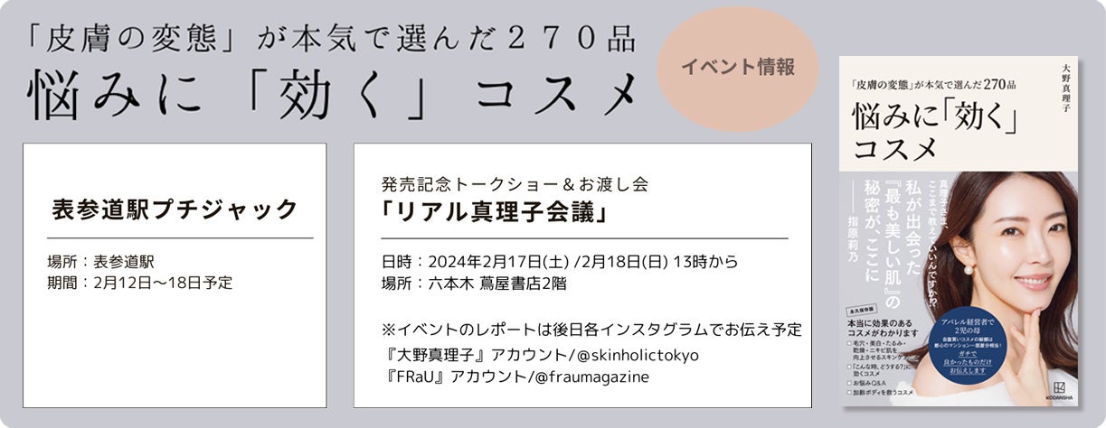 コスメ好きが注目「皮膚の変態」大野真理子さん初の書籍 本日発売!実体験から肌悩みに効くコスメを教えます。発売を記念して駅広告や、トークショーも開催決定!