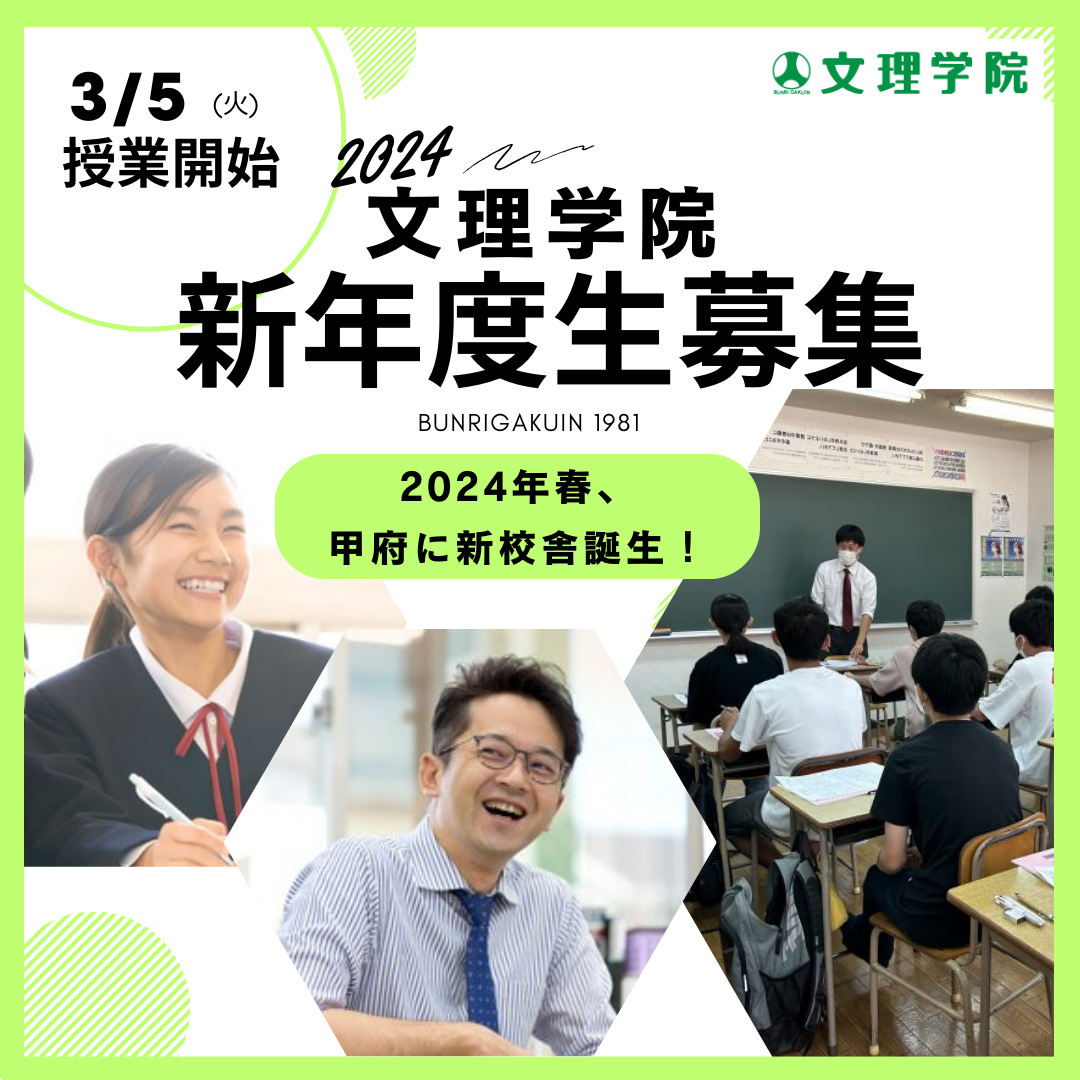 文理学院の経営理念・指導方針を根底に、教育に携わる企業として以上のようなことを妥協なく徹底して実施してきたことが「塾生・保護者の皆さんの高い満足度」に繋がっているのだと思います。 そして今年3月よりスタートする2024年度は、より多くのニーズにお応えし、塾生・保護者の皆さんにもっともっと喜んでいただきたく、新たな取り組みを実施していきます。私たちは学習塾ですから、当たり前ですが生徒たちの学力向上、第1志望合格へ向け、寄り添い鍛え上げます! また、教師1人ひとりの「言葉と行動」を以って、生徒1人ひとりの「自立・自律・自走できる人間力」を育みます。