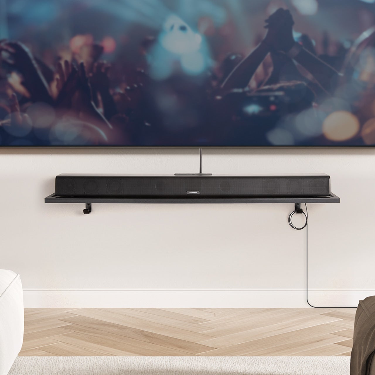 サウンドバーや周辺機器を壁面に設置できる壁掛けシェルフを発売