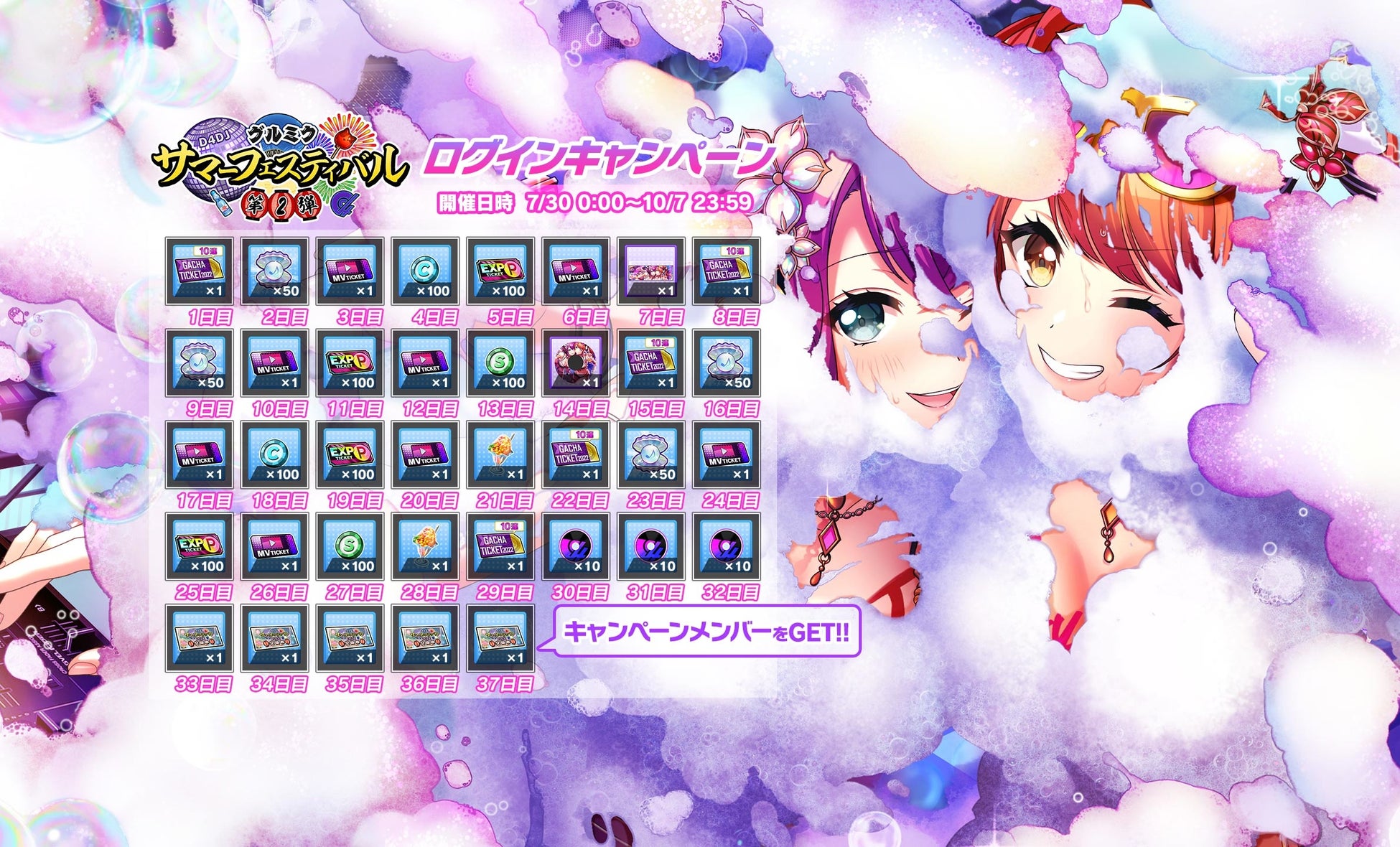 - グルミクサマーフェス!!第2弾ログインボーナスキャンペーン開催!