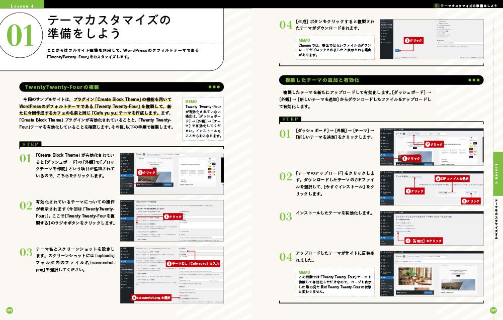 本書では、このような新しいWordPressのサイト制作方法を解説しています。デフォルトテーマである「Twenty Twenty-Four」を利用してサイトを作っていきますので、特定のテーマに依らない標準的で応用範囲の広い手順が学べます。ブロックエディターの使い方から詳細に紹介しており、解説動画も用意されていますので、細かな操作も実際の画面を見ながら確認可能です。