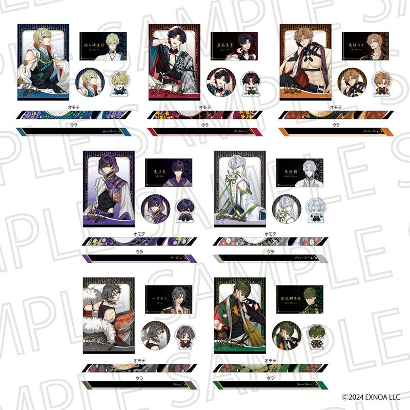 セット内容:リボンスカーフ・ブロマイド・名刺風カード・カンバッジ・アクリルブロック