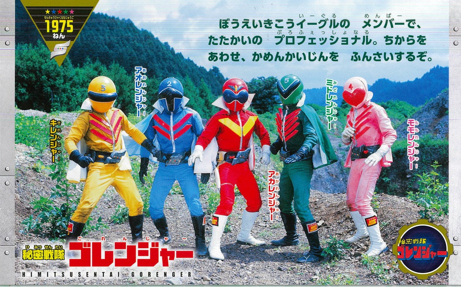 スーパー戦隊シリーズの第1作目となる作品。国際防衛機構イーグルの秘密部隊で、すぐれた隊員が集められた。ゴレンジャースーツを「転換」して装着!