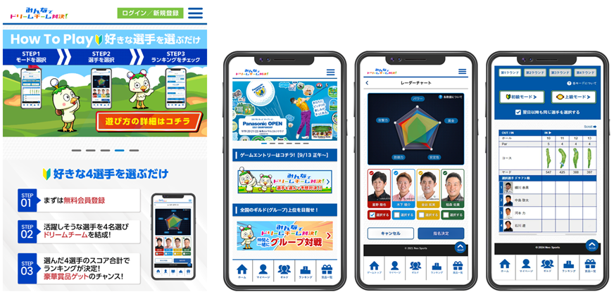 テレビ放送やネット配信をご覧いただきながら、選手をもっと知って、観戦をより楽しめるオンライン参加型予想ゲーム、通称「みんドリ」を2024年も実施します。パナソニックオープンに出場する選手の中から、スタッツやプロフィールをもとにお気に入りの選手を4名選び、自分だけのドリームチームを結成。チームの合計スコアを友人やご家族と競い合う新しいゴルフの楽しみ方です。