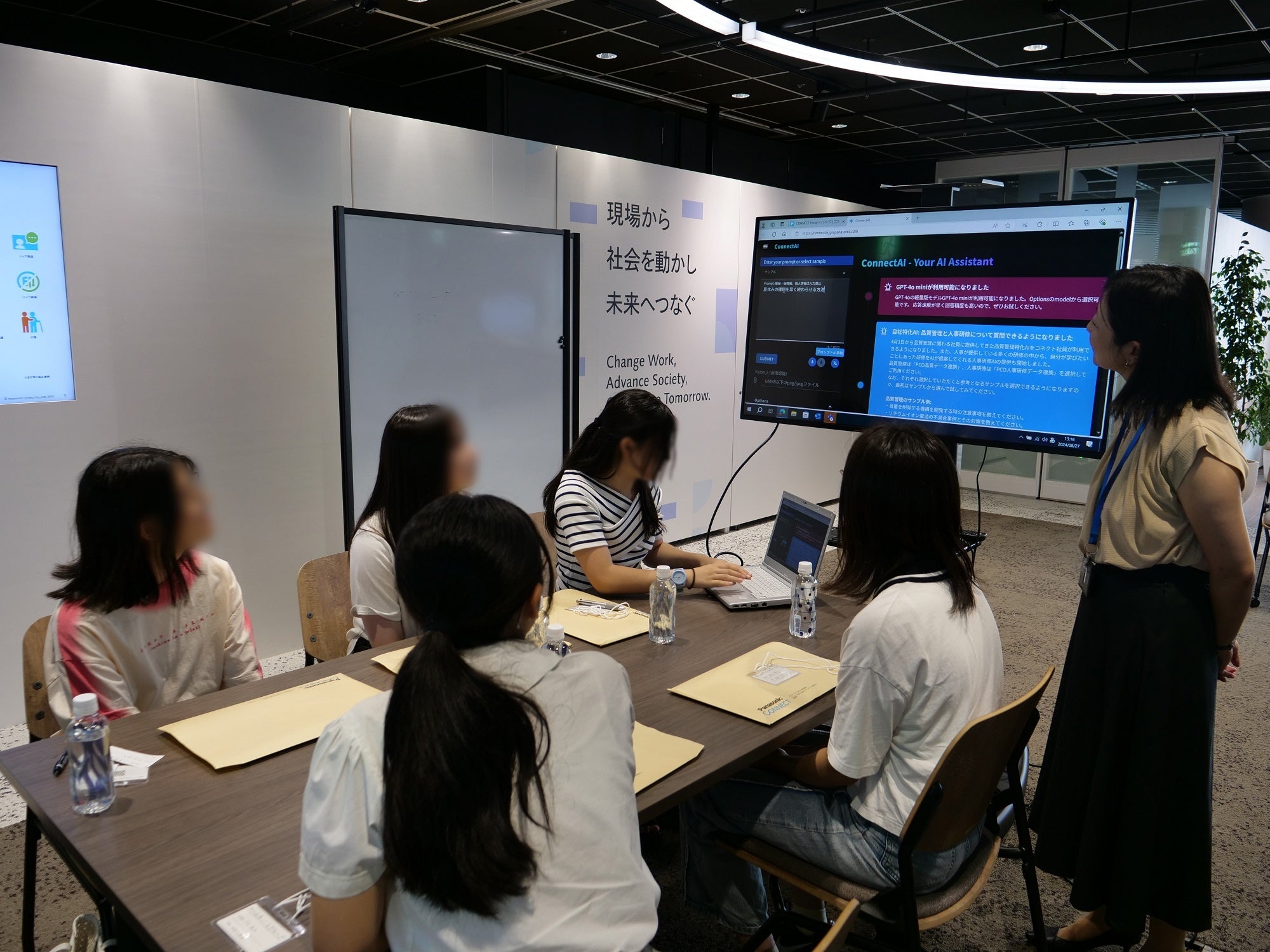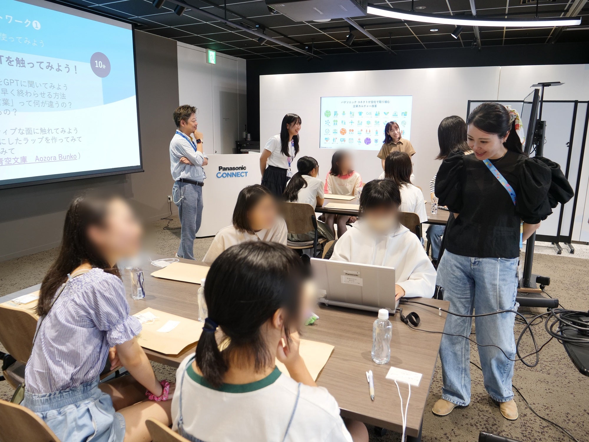 2024年8月27日、パナソニック コネクト本社において、第1回オフィスツアー&ワークショップを開催しました。「AI研究の仕事に触れて女性技術者とお話しましょう!」をテーマに、計19名の学生(中学生12名、高校生7名)が参加しました。パナソニック コネクトでAI研究に携わる女性技術者とのワークショップやフリートーク、本社オフィスの見学などのメニューに取り組みました。