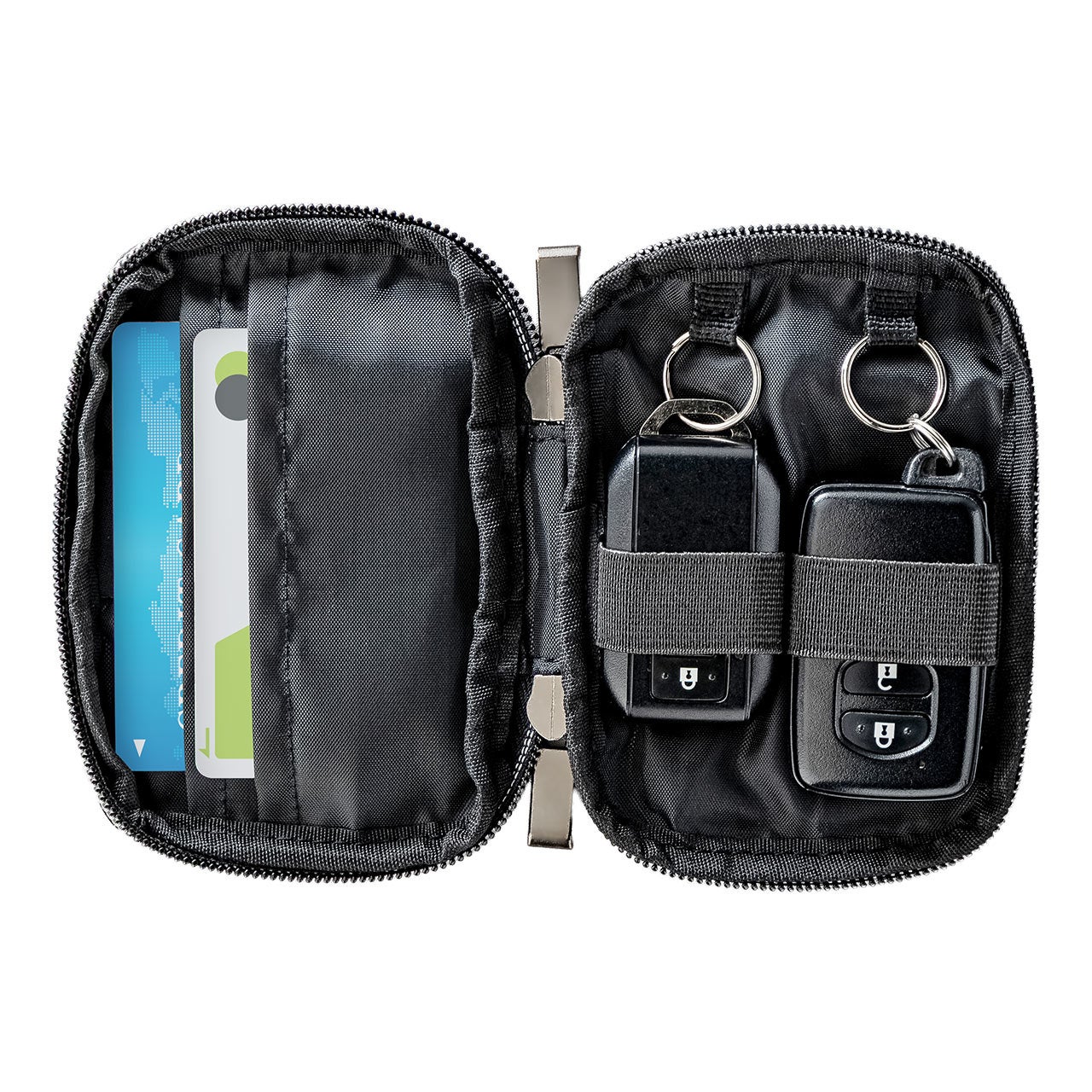 スマートキーケース 鍵 コーデュラ素材 スマートキー 2個収納 カード収納 外側ポケット コンパクト 軽量 キーリングつき