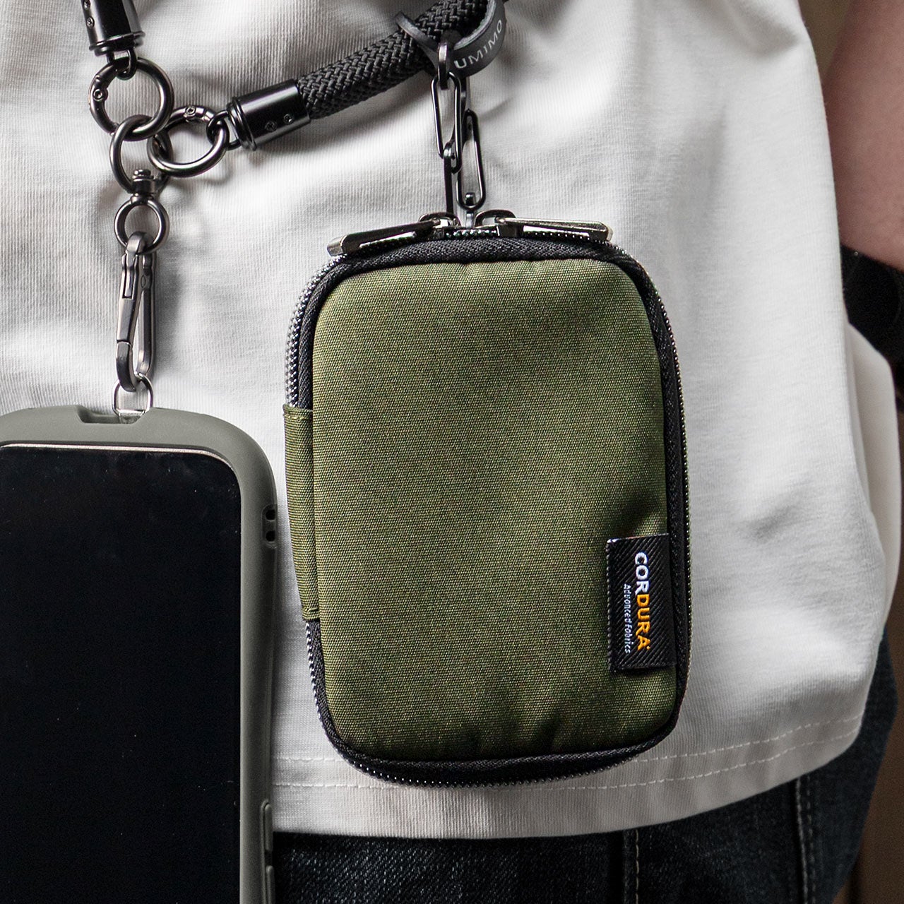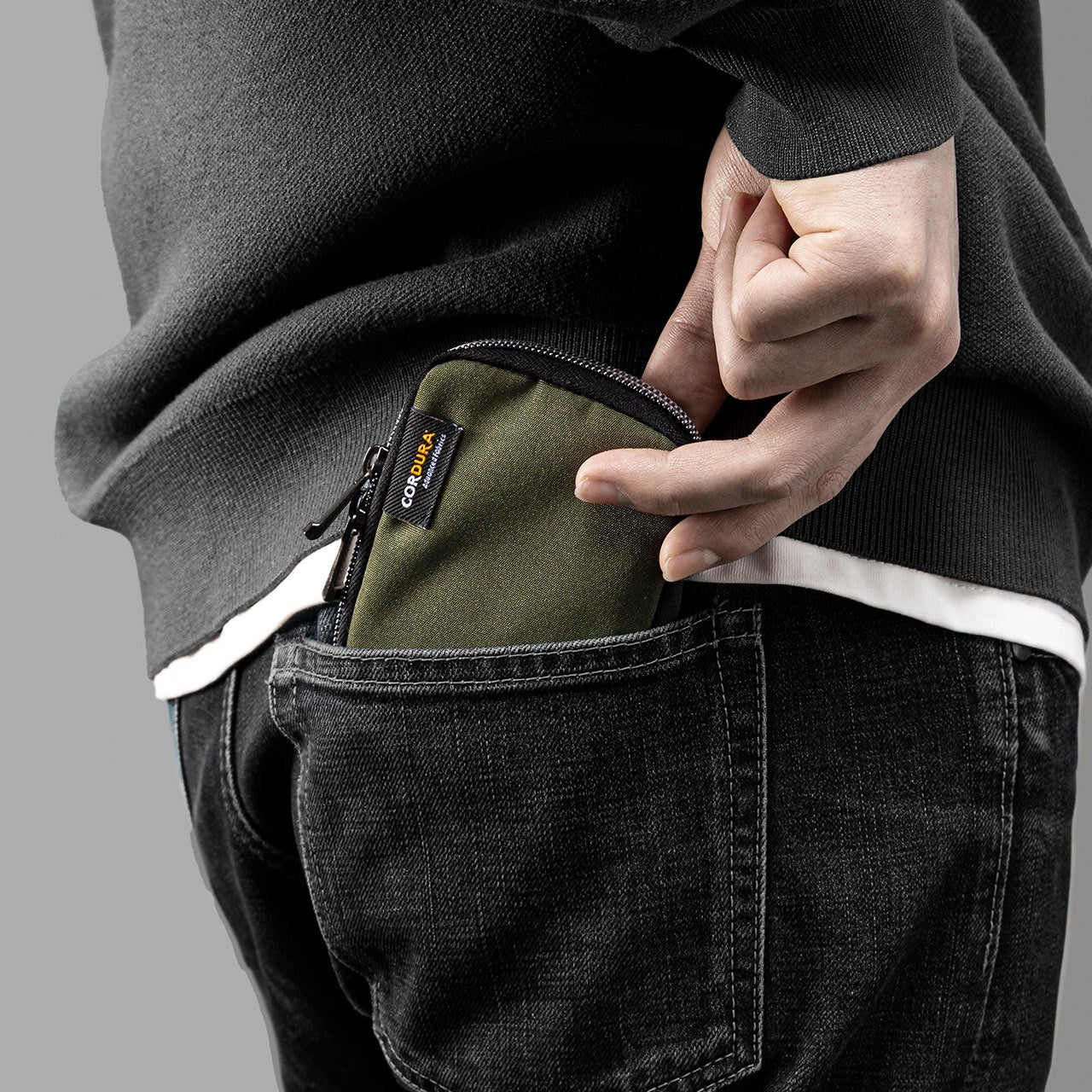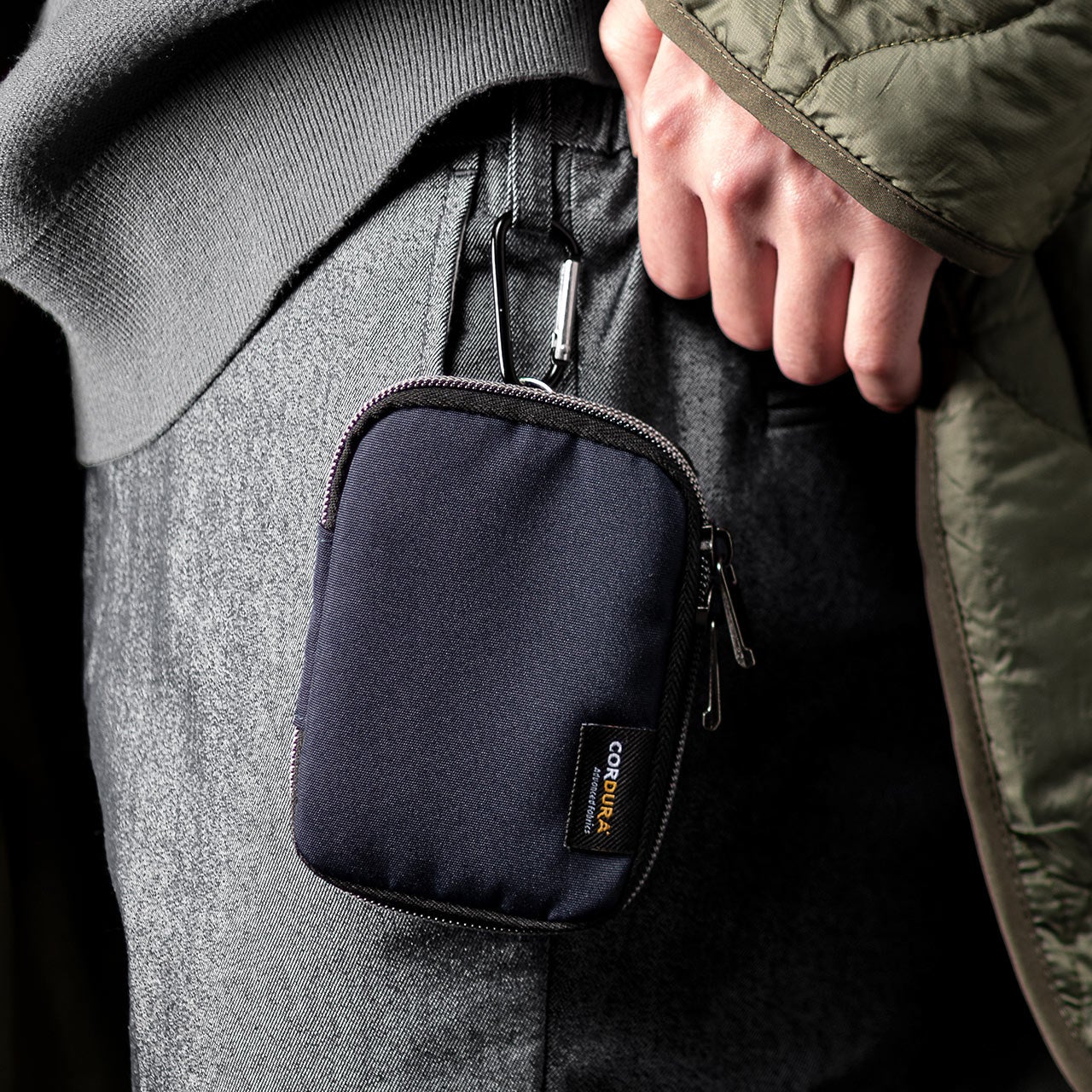 素材には撥水性のあるCORDURA生地を採用し、日常使いにうれしい丈夫さと軽さを両立しました。重量は約46gと軽量で、スマートキーやカードを入れても持ち運びの負担になりにくい設計です。デザインはシンプルで落ち着きがあり、カジュアルな装いはもちろん、ビジネスシーンにも自然になじみます。男女を問わず使いやすい、汎用性の高いアイテムです。