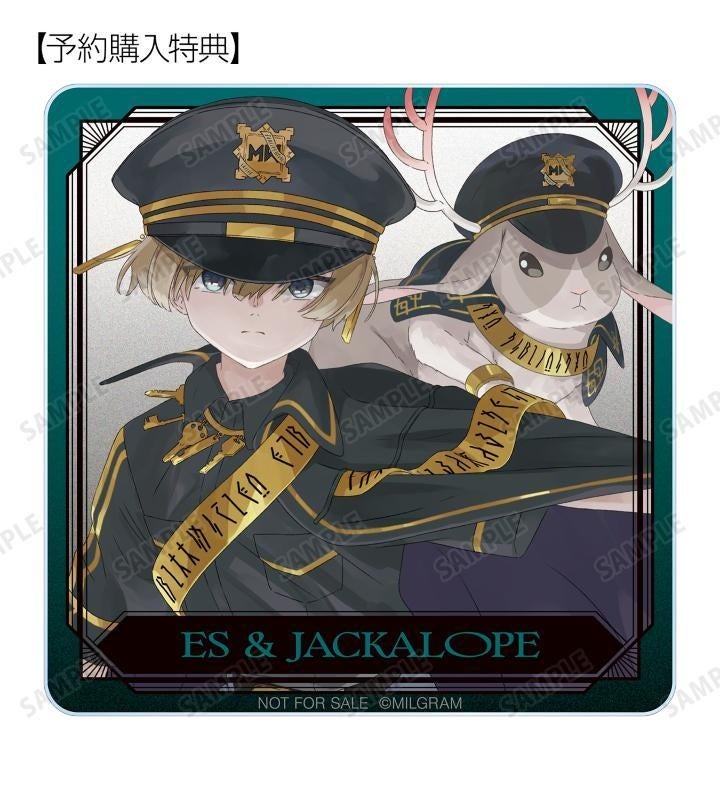 当商品を1BOX、または単品にて1BOX相当数ご注文ごとに、予約購入特典として「描き下ろし エス&ジャッカロープ LIVE EVENT「hallucination」ver. スクエア缶バッジ イベント&AMNIBUS限定特典」を付属いたします。
