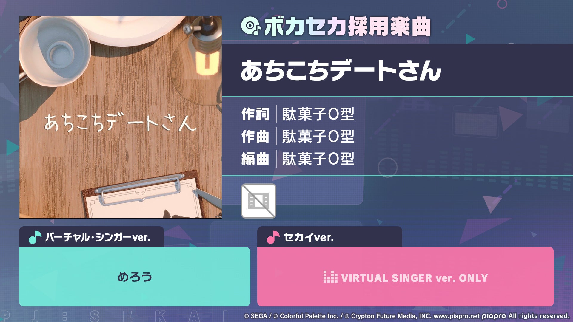 新たなリズムゲーム楽曲として、以下6曲の追加が決定いたしました。「イガク」(作詞・作曲:原口沙輔)は、「ボカコレ2024冬TOP100」で1位を獲得した作品、「あちこちデートさん」(作詞・作曲:駄菓子O型)は、「ボカコレ2024冬ルーキーランキング」で1位を獲得した作品、「彗星ノ銀河」(作詞・作曲:マツシタレオ)は、「一緒に作ろう!第22回楽曲コンテストプロセカNEXT」の採用作品、「夏夜ノ唄」(作詞・作曲:平田義久)は、「セカイノオト vol.1」の収録楽曲となります。