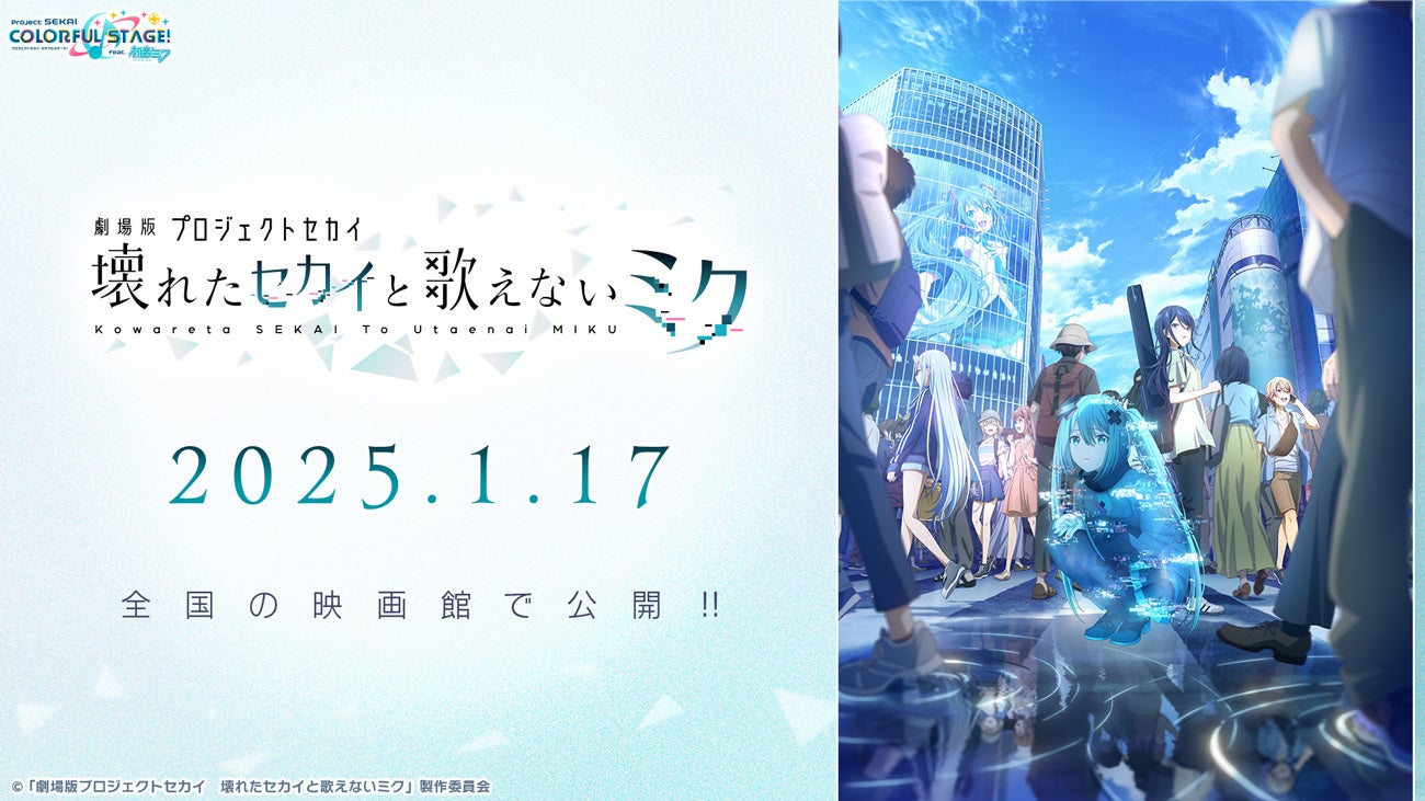 『プロジェクトセカイ』初となるアニメ映画『劇場版プロジェクトセカイ 壊れたセカイと歌えないミク』が、2025年1月17日(金)より映画館で公開することが決定いたしました。