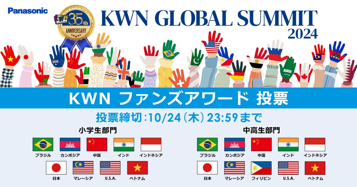 パナソニック ホールディングス株式会社は、2024年10月26日(土)に「キッド・ウィットネス・ニュース(以下、KWN)グローバルサミット 2024」をオンラインで開催します。2024年で35周年を迎えるこの映像制作を通じた教育支援プログラムには、世界11カ国から約3,000人以上の子どもたちが参加しています。
