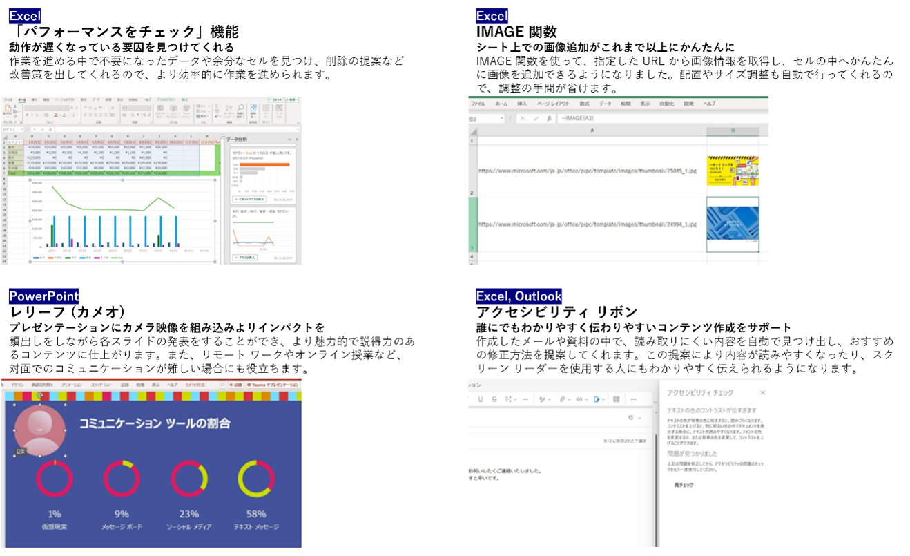 また、カスタマイズで、Microsoft 365 Basic(※3)+ Office Home & Business 2024を選択可能です。従来の、Microsoft Office Home & Business 2021から、機能強化がなされた、Microsoft 365 Basic + Office Home & Business 2024が本体購入時のカスタマイズで選択可能になりました。Excel、PowerPointなどがより使いやすく進化し、業務の効率化に貢献します。