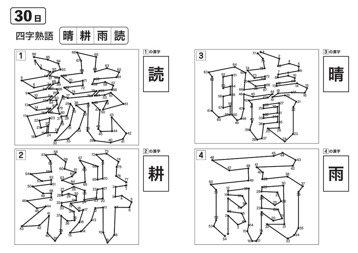 ・点つなぎで現れた漢字4つを組み合わせて四字熟語を作る