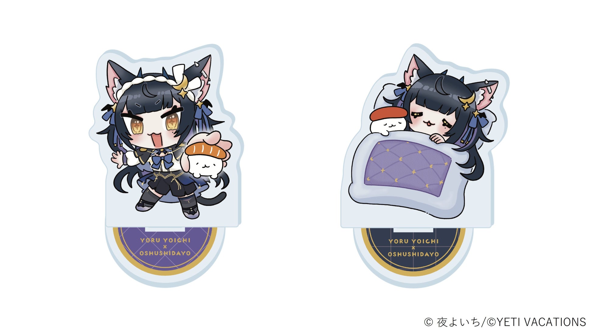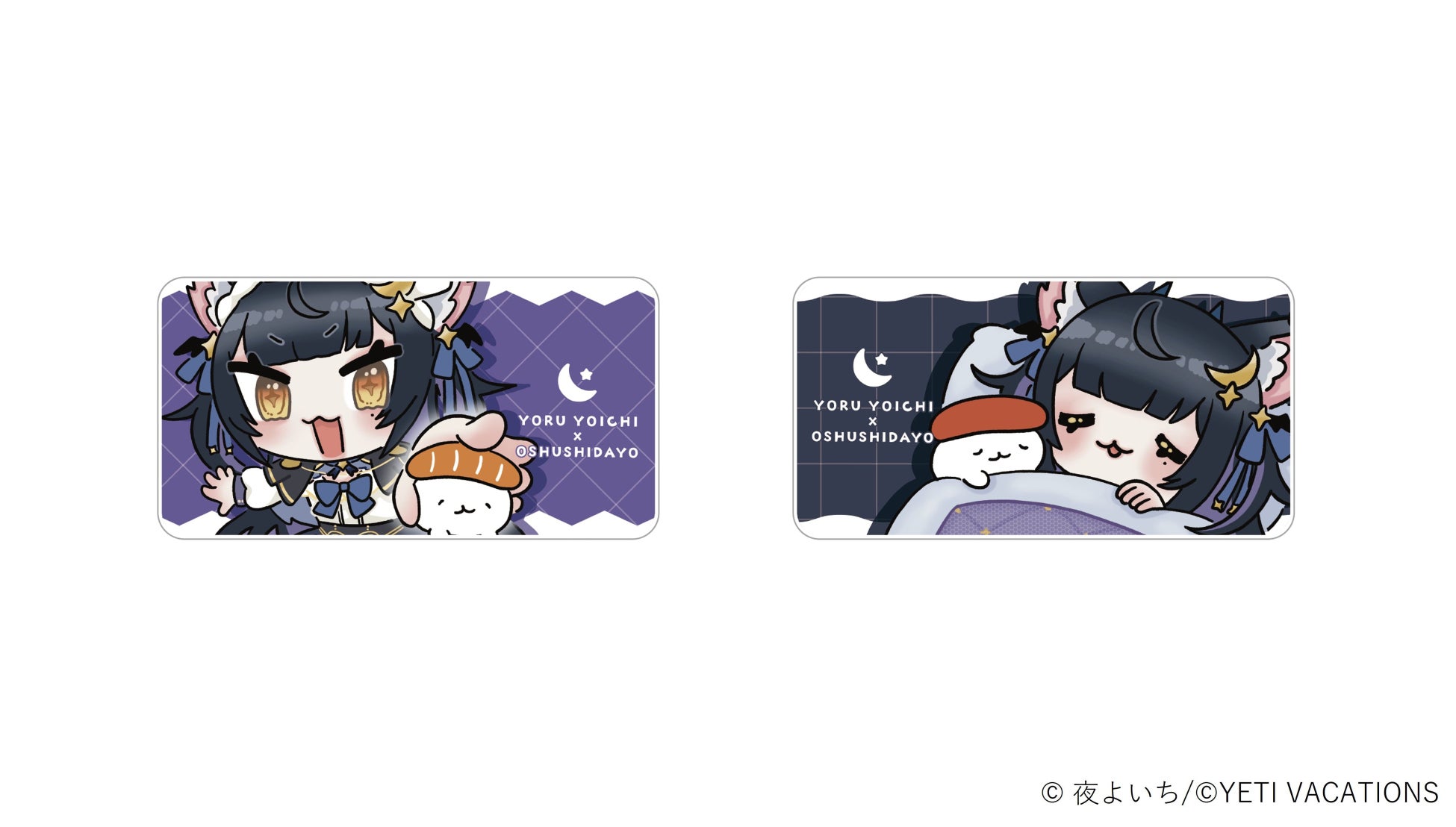 YBIさんによる描き下ろしの可愛すぎるミニキャラの夜よいちさんとおしゅしのイラストは必見!