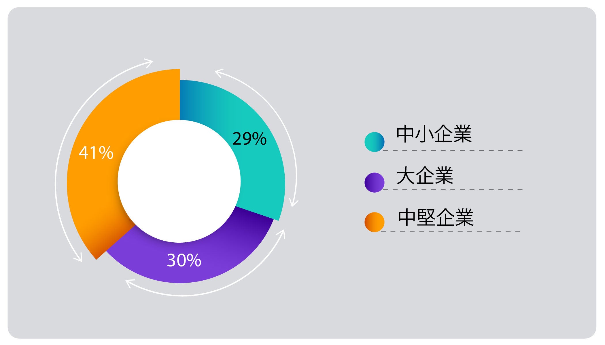 調査回答者: 調査は、収益に基づいて企業間で実施されました。