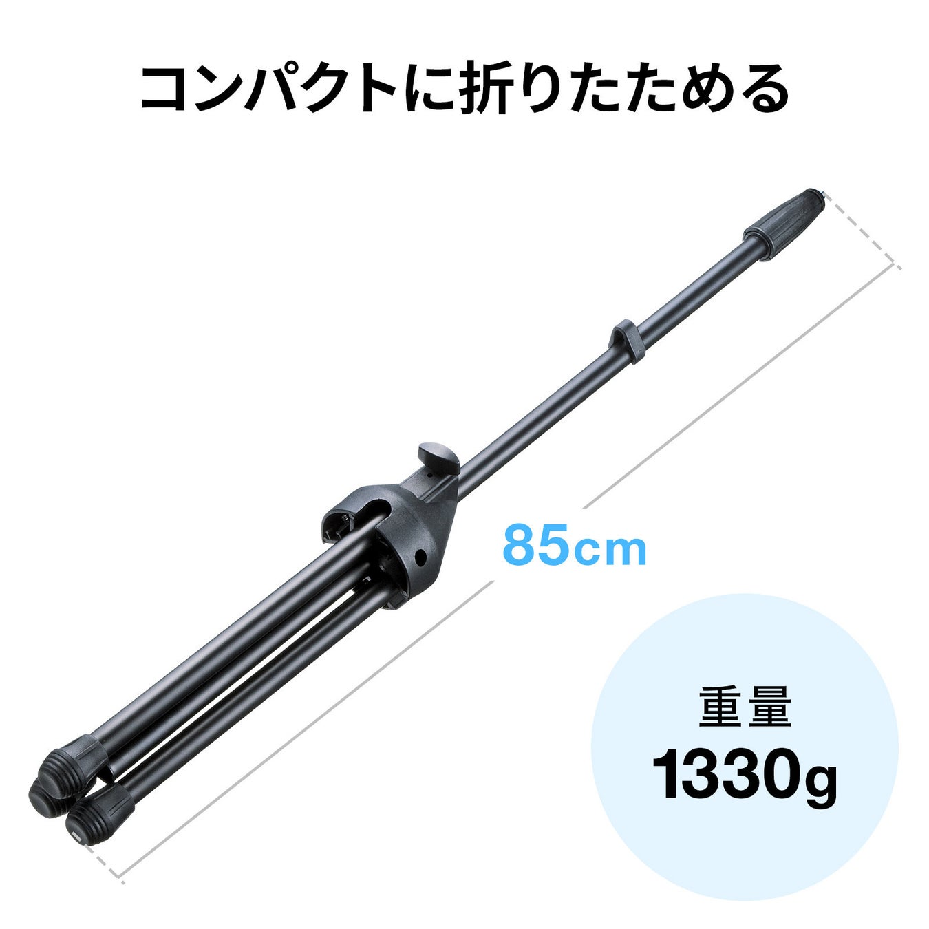85cmとコンパクトに折りたためるので、持ち運びや収納に便利です。