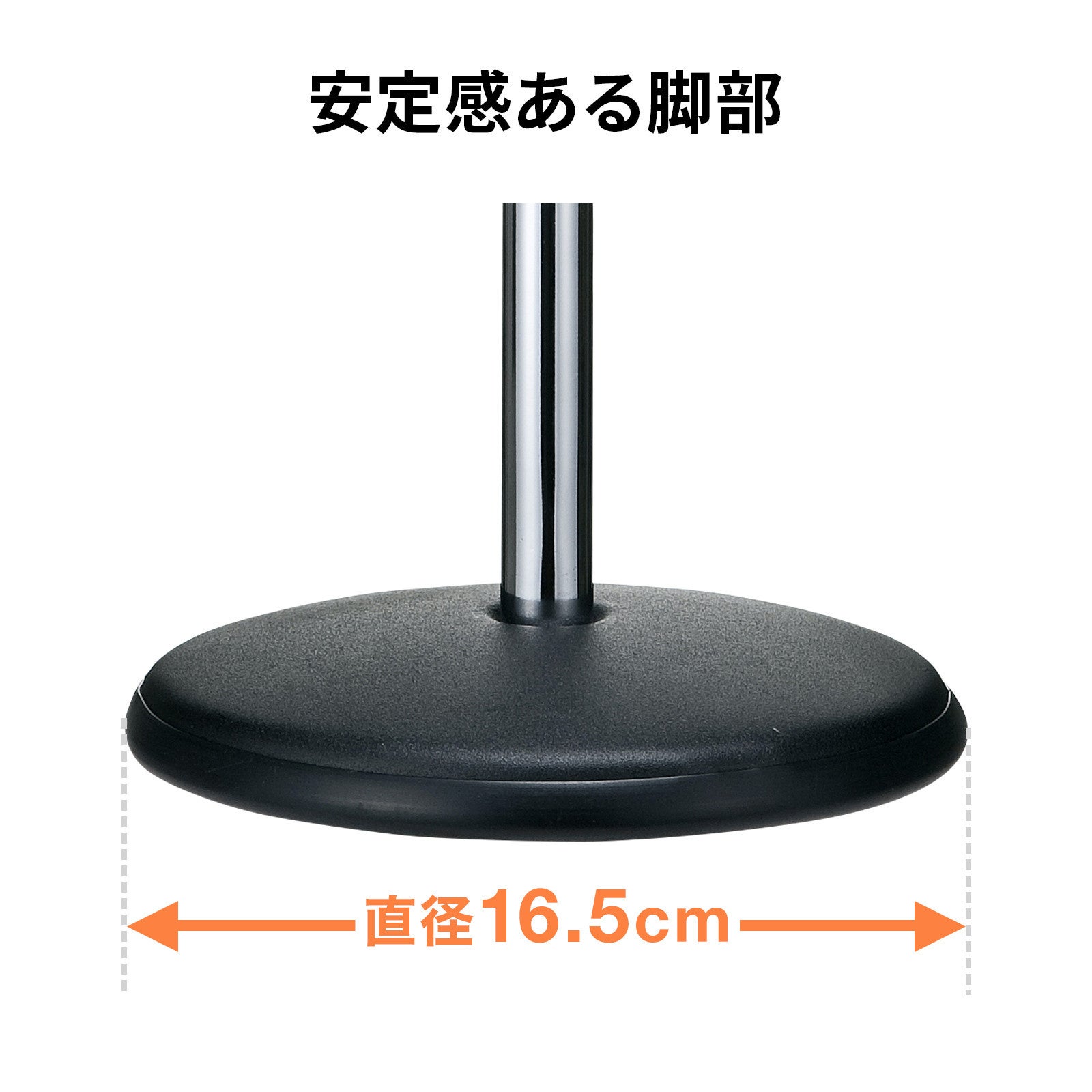 MM-SPST2N2は直径16.5cm、重量837gの重量感のある大きめな台座を採用しているので、安定して設置できます。