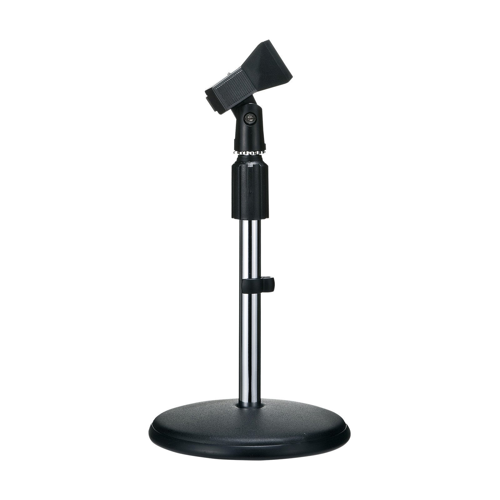 スタンドの高さの上下可動はもちろん、クリップ式のマイクホルダーは様々なサイズに対応します。