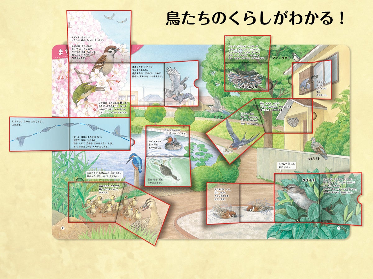 しかけをめくって鳥を発見できる図鑑『はっけんずかんプラス 鳥』発売! 身近な鳥の世界を知ると、お散歩が楽しくなる♪