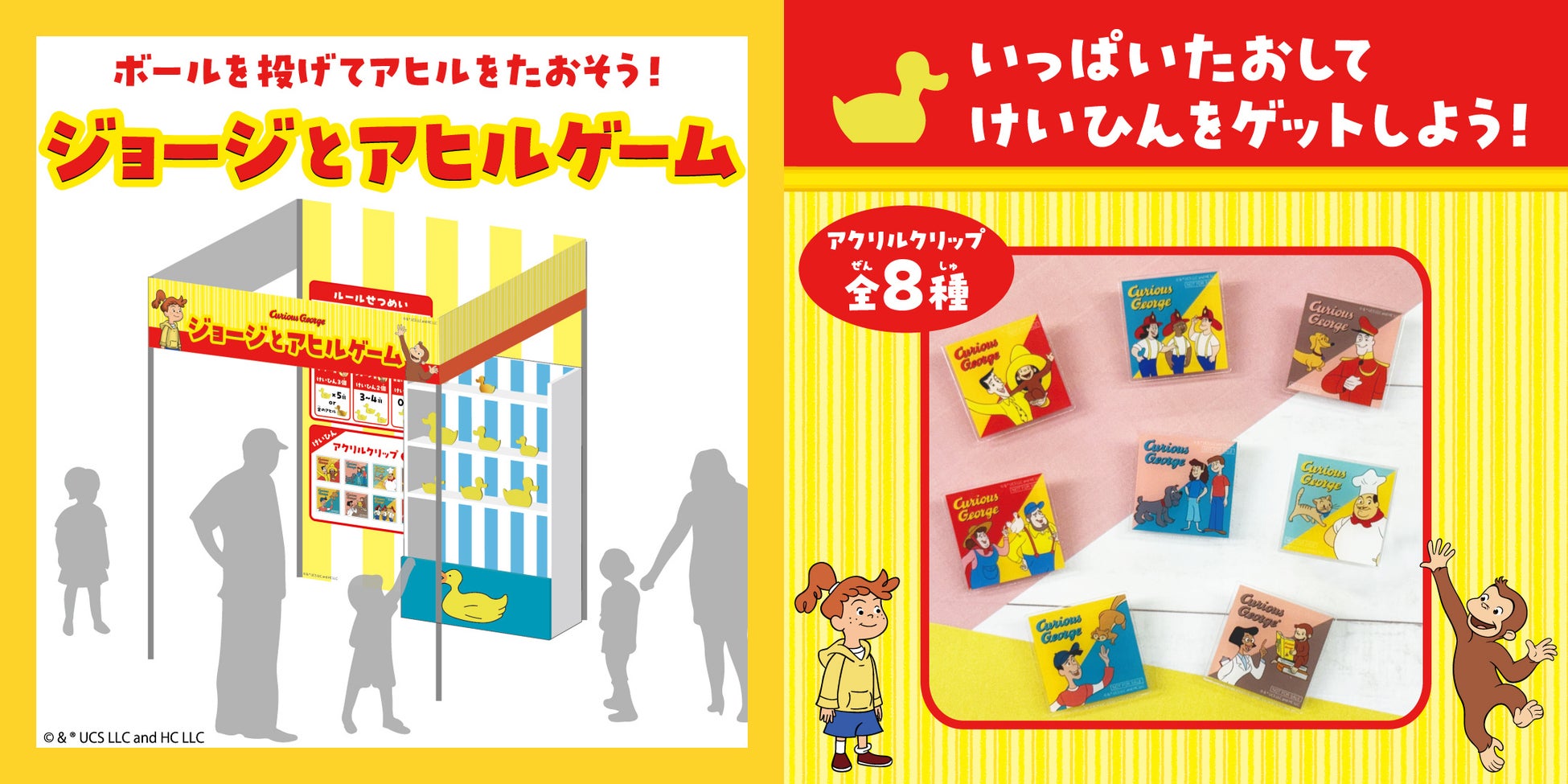 グッズの販売だけでなく、ぬり絵やペタペタ焼きなど体験ができるPOP UP SHOPに新たにアクティビティゲーム2種、ワークショップ、さらには体験型コーナーを展開します。ジョージと一緒に写真が撮れるイベントもご用意しております。