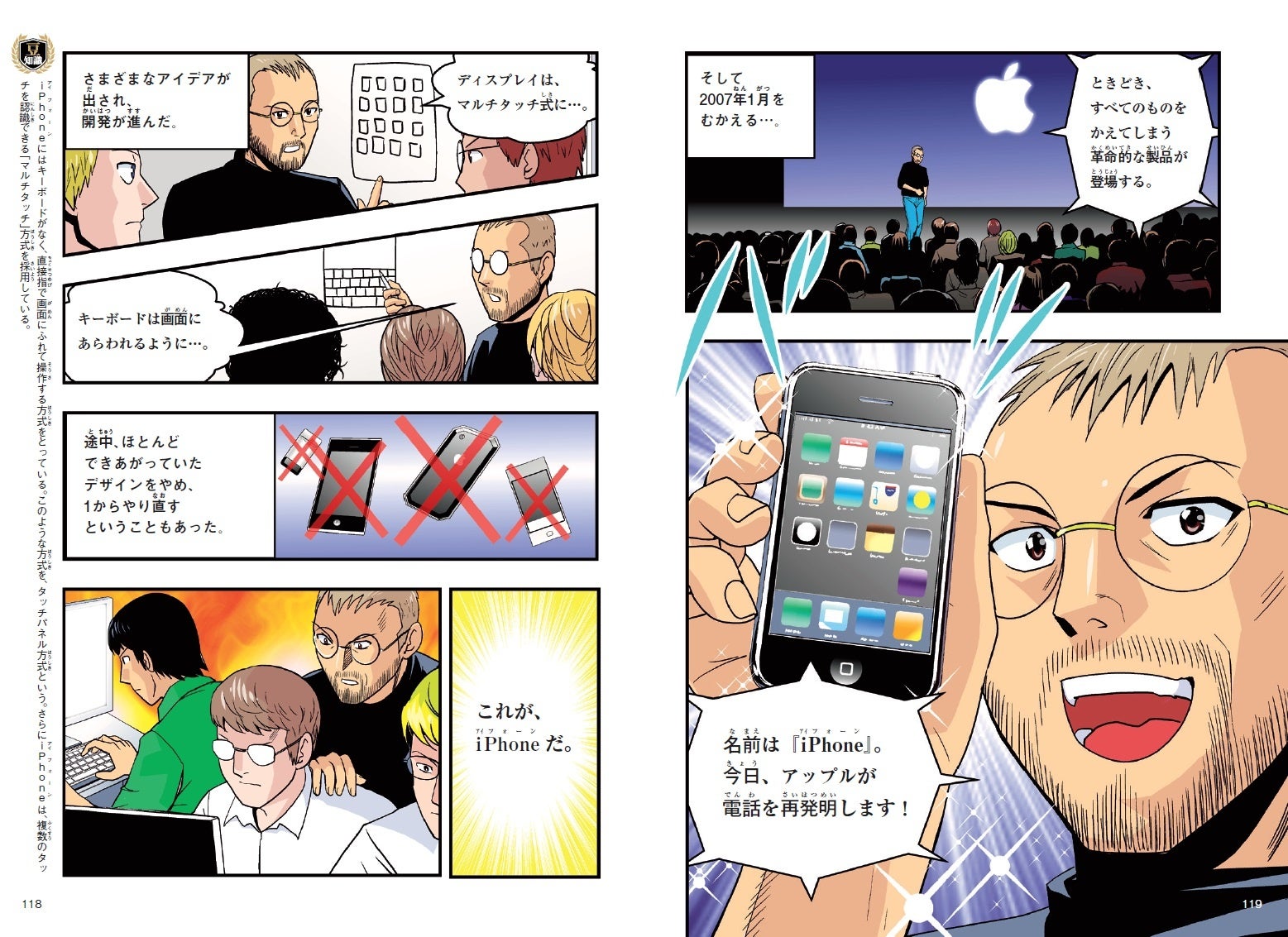 ジョブズが開発に携わったIT機器や当時の時代の背景などを詳しく紹介しています。まんがだけでは紹介しきれなかった人間関係、キーワード、名言を知ることで、より深くジョブズの一生がわかります。