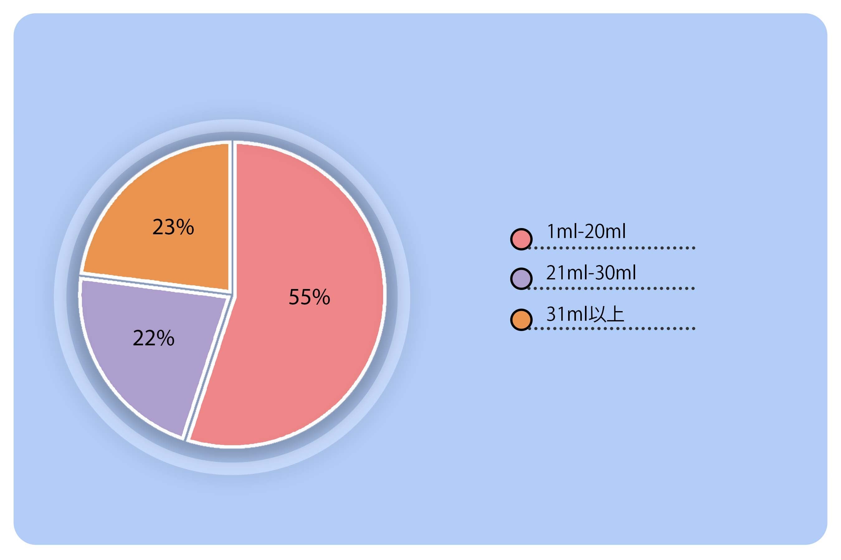 サイズに基づいて、市場は 1ml ~ 20ml、21ml ~ 30ml、および 30ml 以上に細分化されます。 1ml ~ 20ml のセグメントが市場を支配しており、より大きな成長すると予想されます。