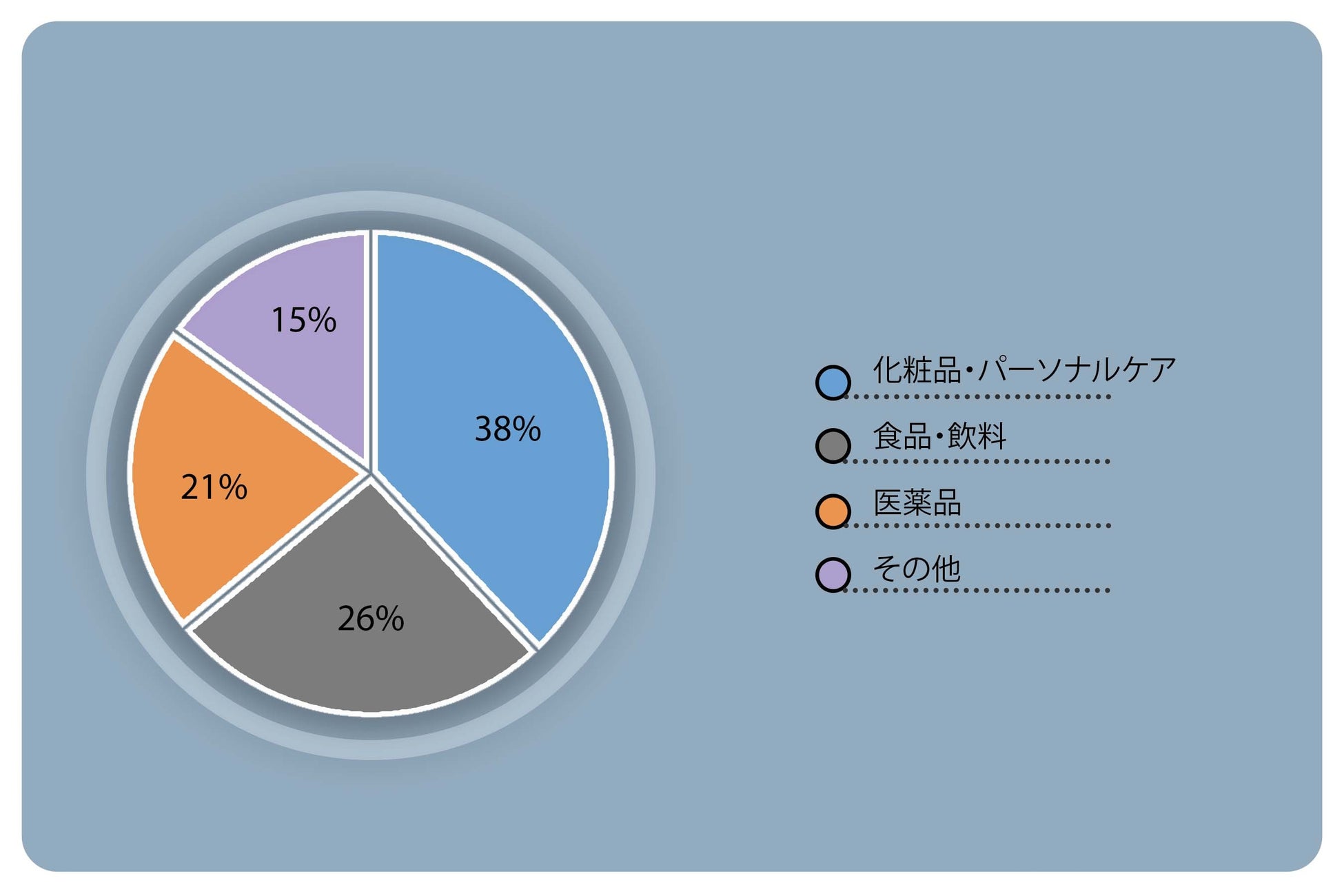 用途別には、化粧品・パーソナルケア、食品・飲料、医薬品、その他に分類されますが、2021年の市場シェアは化粧品・パーソナルケア分野が最も大きく、次いで食品・飲料分野となります。