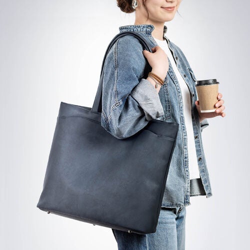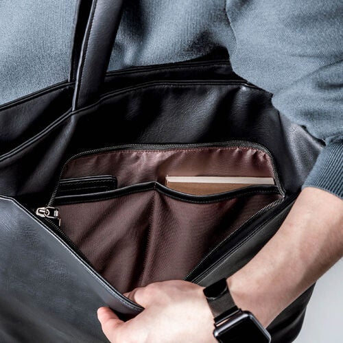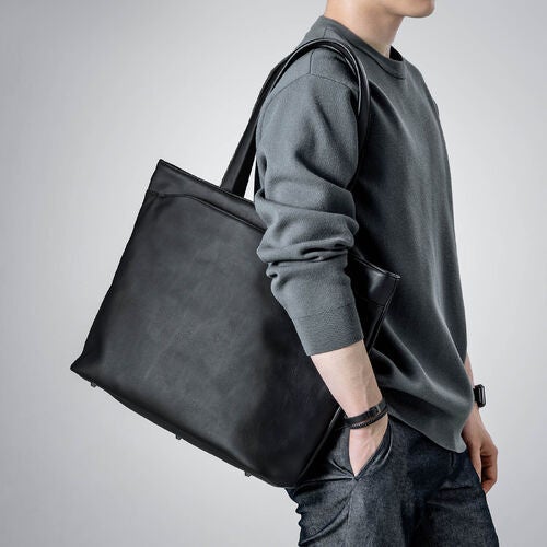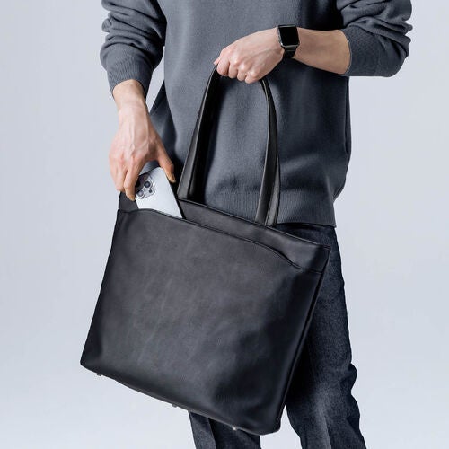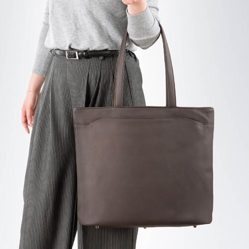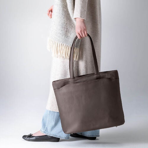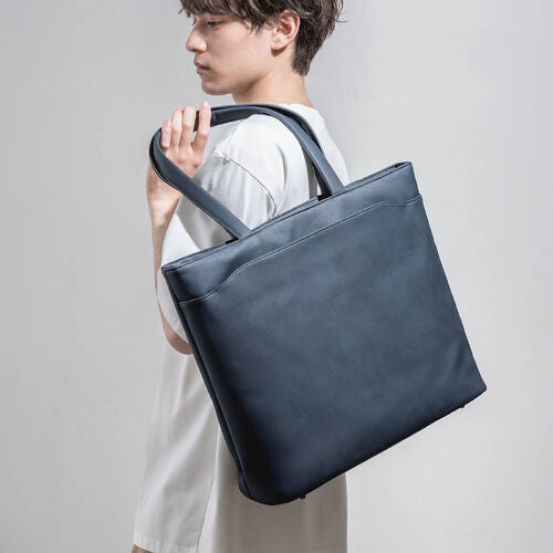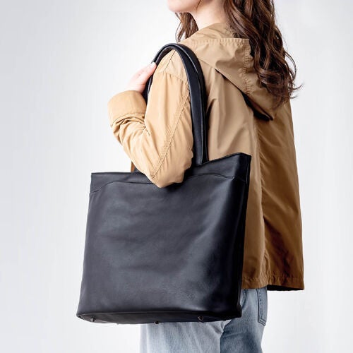 オンでもオフでも使いやすい、上質PUレザーを採用したシンプルトートバッグ