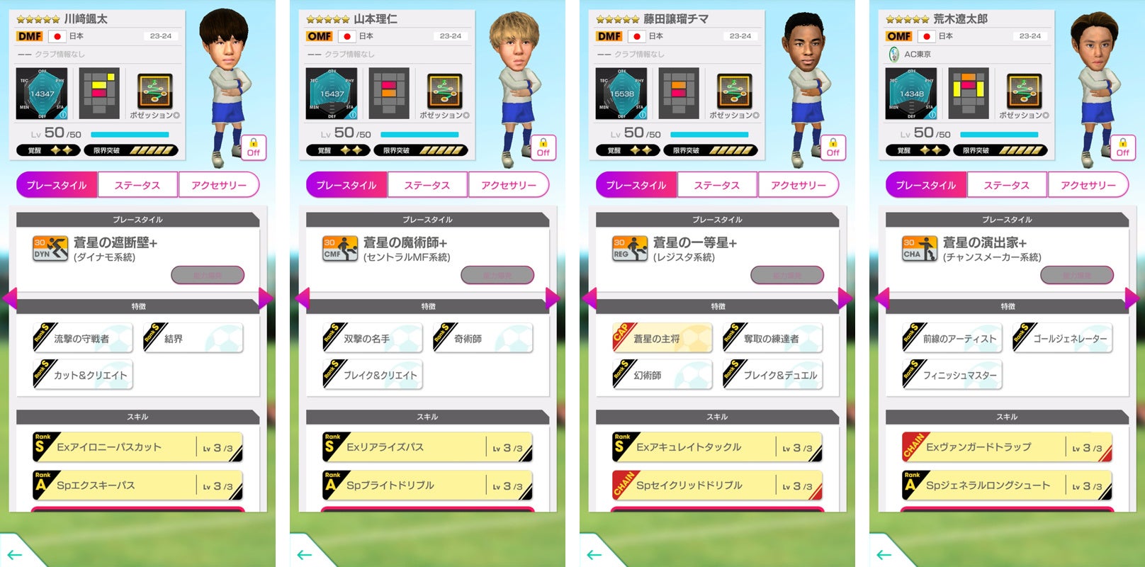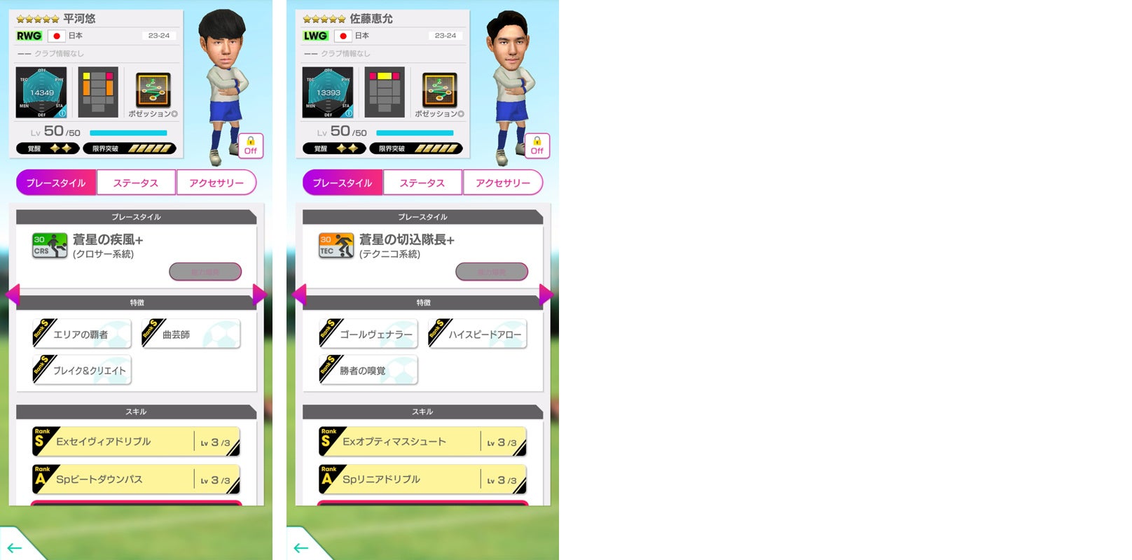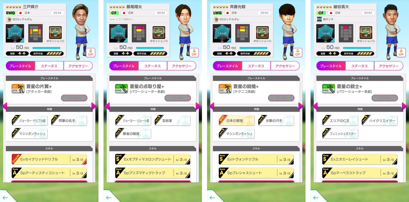今回のスカウトでは、★5選手が「レベルMAX(Lv.50)/覚醒2段階達成/各スキル・各能力UP Lv.2達成」で登場します。