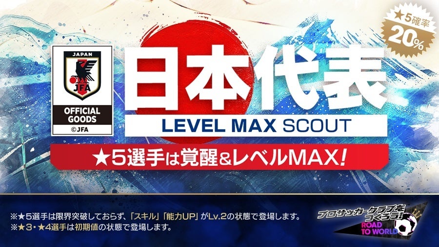 『プロサッカークラブをつくろう! ロード・トゥ・ワールド』新Ver.の日本代表選手が登場する“日本代表LEVEL MAX SCOUT”を開催!