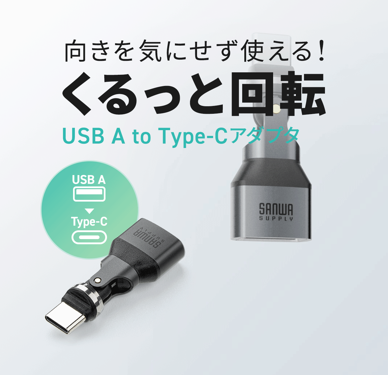 サンワサプライ株式会社(本社:岡山市北区田町1-10-1、 代表取締役社長 山田 和範)が運営している直販サイト『サンワダイレクト』では、540度回転コネクタで向きを自在に調整でき、断線や端子負担を軽減するUSB A to C変換アダプタ「500-USB103」を発売しました。