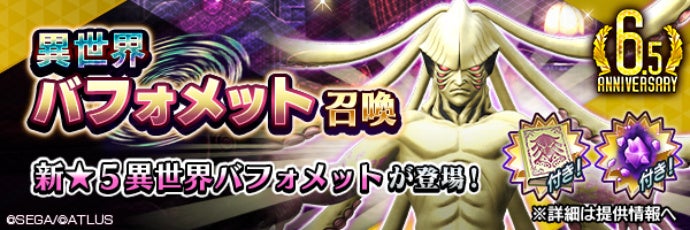 「6.5周年 超・感謝祭公開生放送&ファンミーティング」開催を記念して、新★5悪魔「邪神 バフォメット【異世界】」などがラインナップされた召喚が登場!