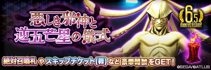 また、新★5悪魔「邪神 バフォメット【異世界】」が登場する特別な召喚や、報酬イベント“悪しき邪神と逆五芒星の儀式”を同日より開催中です。