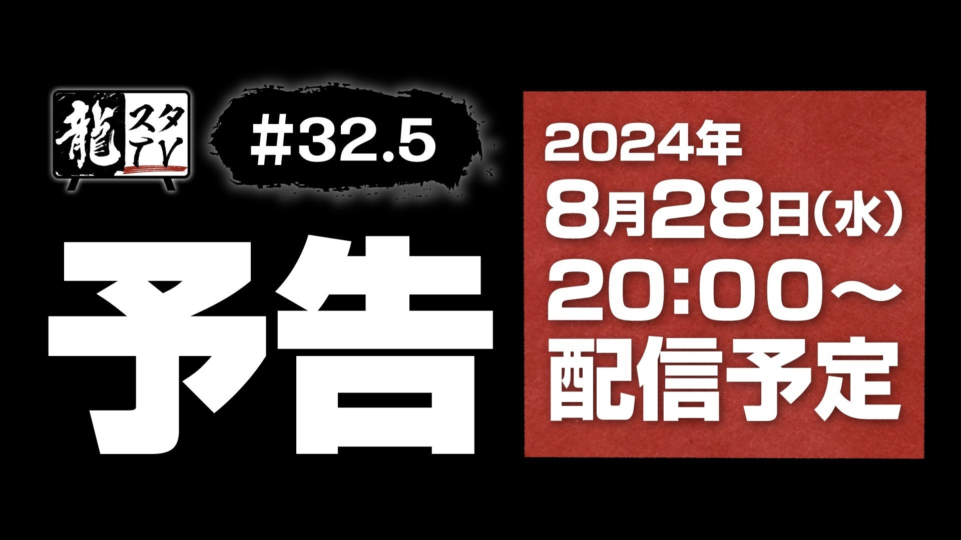 「龍スタTV」第32.5回が8月28日(水)に配信決定「龍が如くスタジオ」からの「予告」をお見逃しなく!