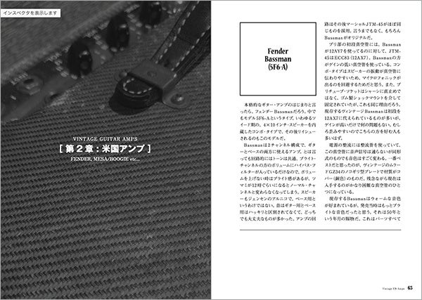 体験に裏付けされた豊富な知識を持つアキマ氏による英国、米国、国産、さまざまなモデルの解説は、ヴィンテージ・ギター・アンプに興味がある人ならば引き込まれてしまうこと間違いなし! 初心者も玄人もヴィンテージ・ギター・アンプの魅力を発見・堪能してもらえる1冊です。