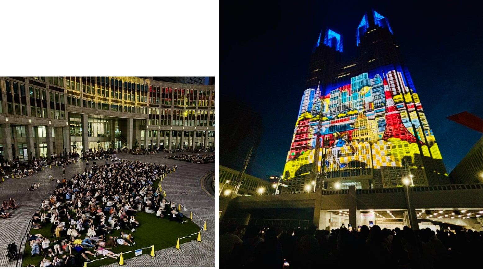 江戸から現代、そして未来へとタイムトラベルする飛脚が駆け抜ける「時をかける飛脚」など、壁面一杯に映し出される色とりどりの映像と音楽を楽しみました。