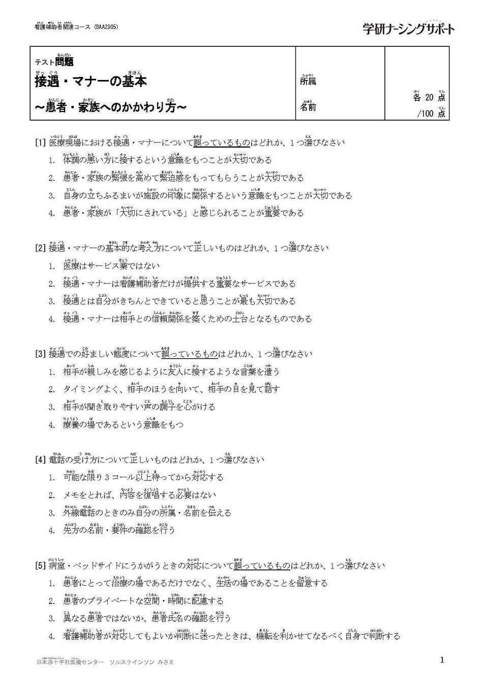 「接遇・マナーの基本~患者・家族へのかかわり方~」