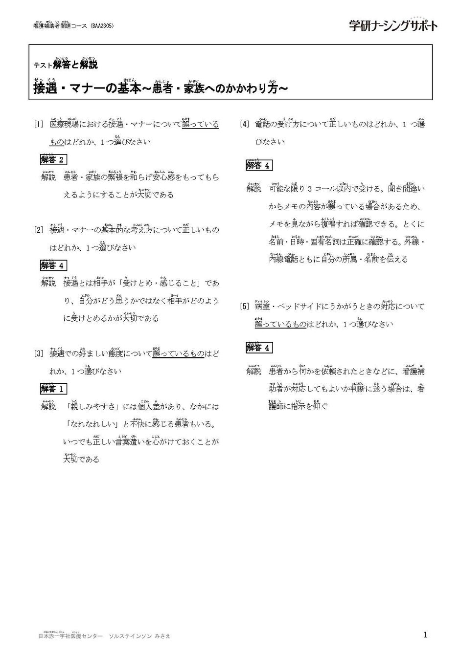 「看護補助者関連 外国語版コース」では、講義映像が4か国語(英語・ベトナム語・インドネシア語・ネパール語)の字幕つきで視聴できます。また、講義資料、テスト(問題・解答解説)の漢字には日本語のルビをつけました。