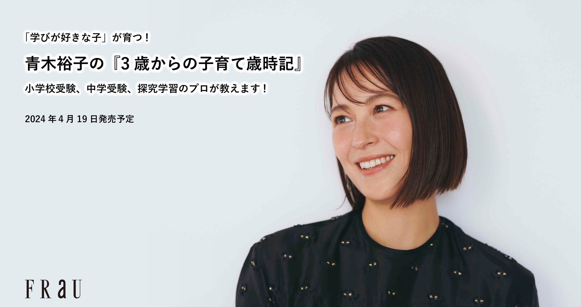 フリーアナウンサーで、2人の男の子を育てる青木裕子さんのFRaUwebの人気連載『子育て歳時記』が書籍化され、4月19日に発売決定! 親子「共育」として、3歳から親子で楽しめる12カ月のさまざまな体験を、青木さんが実践した具体例とともにお届けします。また、連載公開時に大きな話題を呼んだ、自身の子どもの小学校受験についての振り返りや、帯状疱疹になったエピソードなど、子育てに悩むリアルな姿を綴った「教育お悩みエッセイ」も収録。