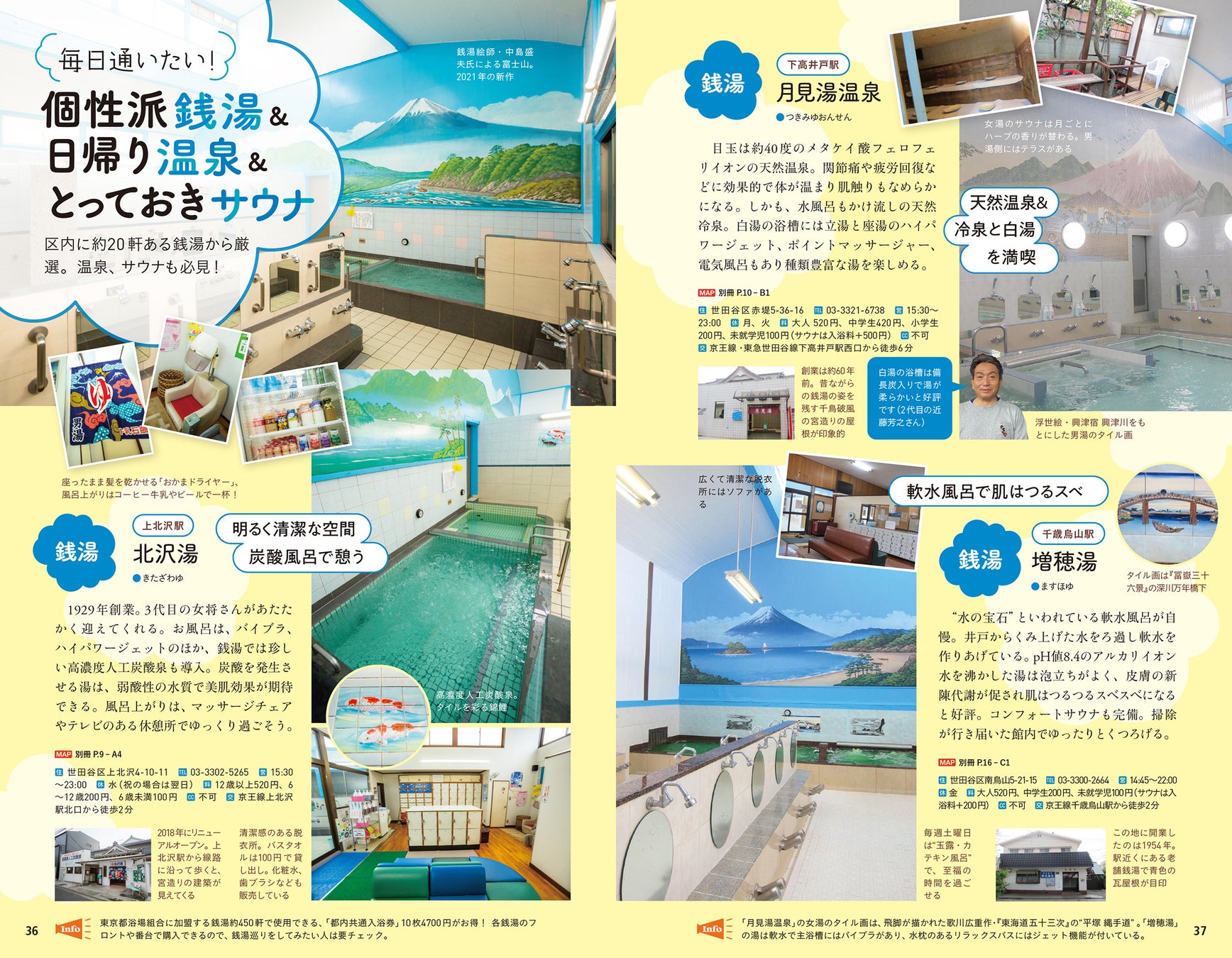 区内に約20軒ある銭湯から、特徴のある銭湯を厳選した特集に、下高井戸・豪徳寺・祖師ヶ谷大蔵の「商店街」で食べ歩きたいグルメをフィーチャー。世田谷散歩を楽しんだあとは、商店街グルメでお腹を満たしてお風呂であたたまり、世田谷発祥スーパーで翌日食べる食材のお買い物をして帰るのもいいかもしれません!