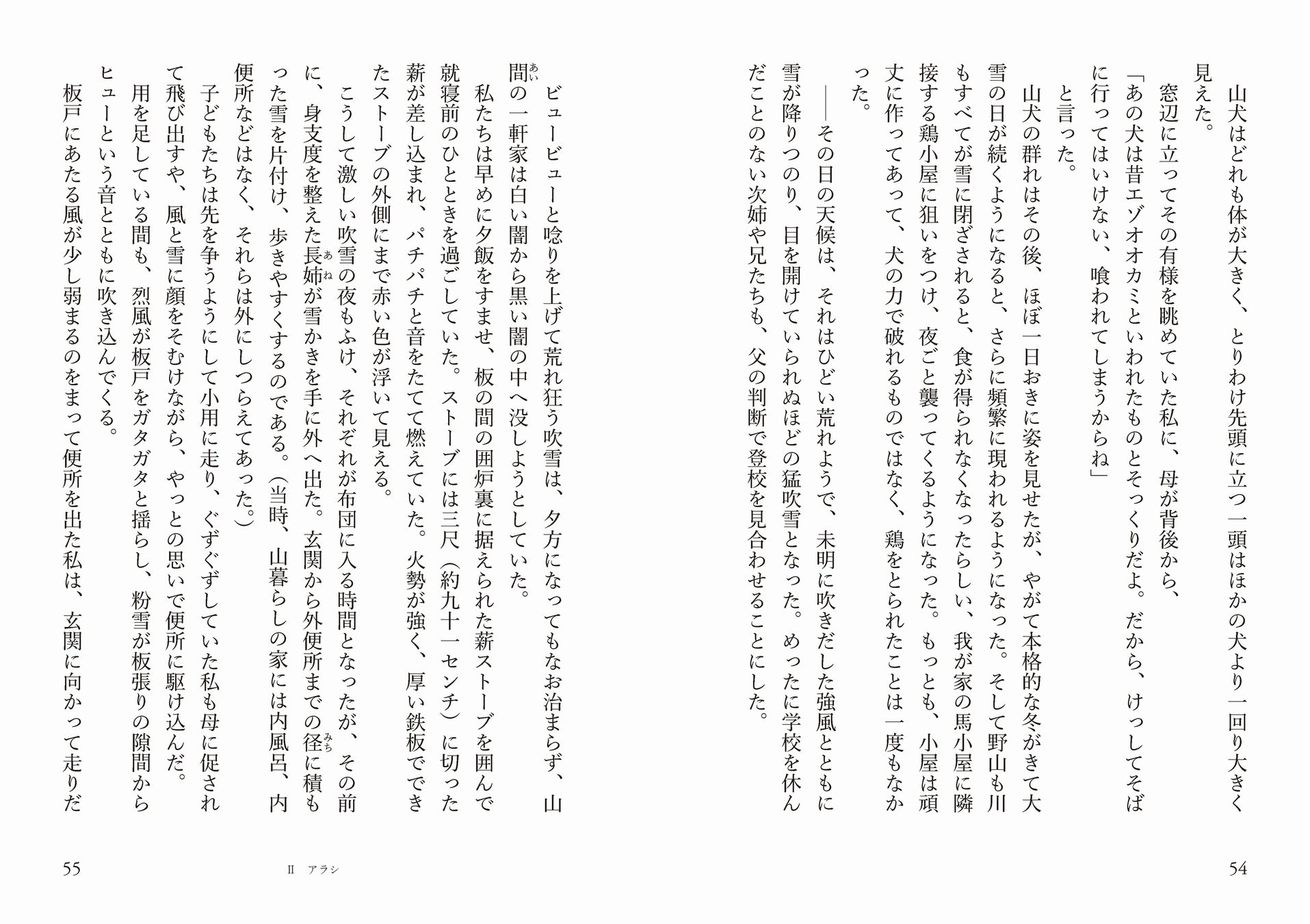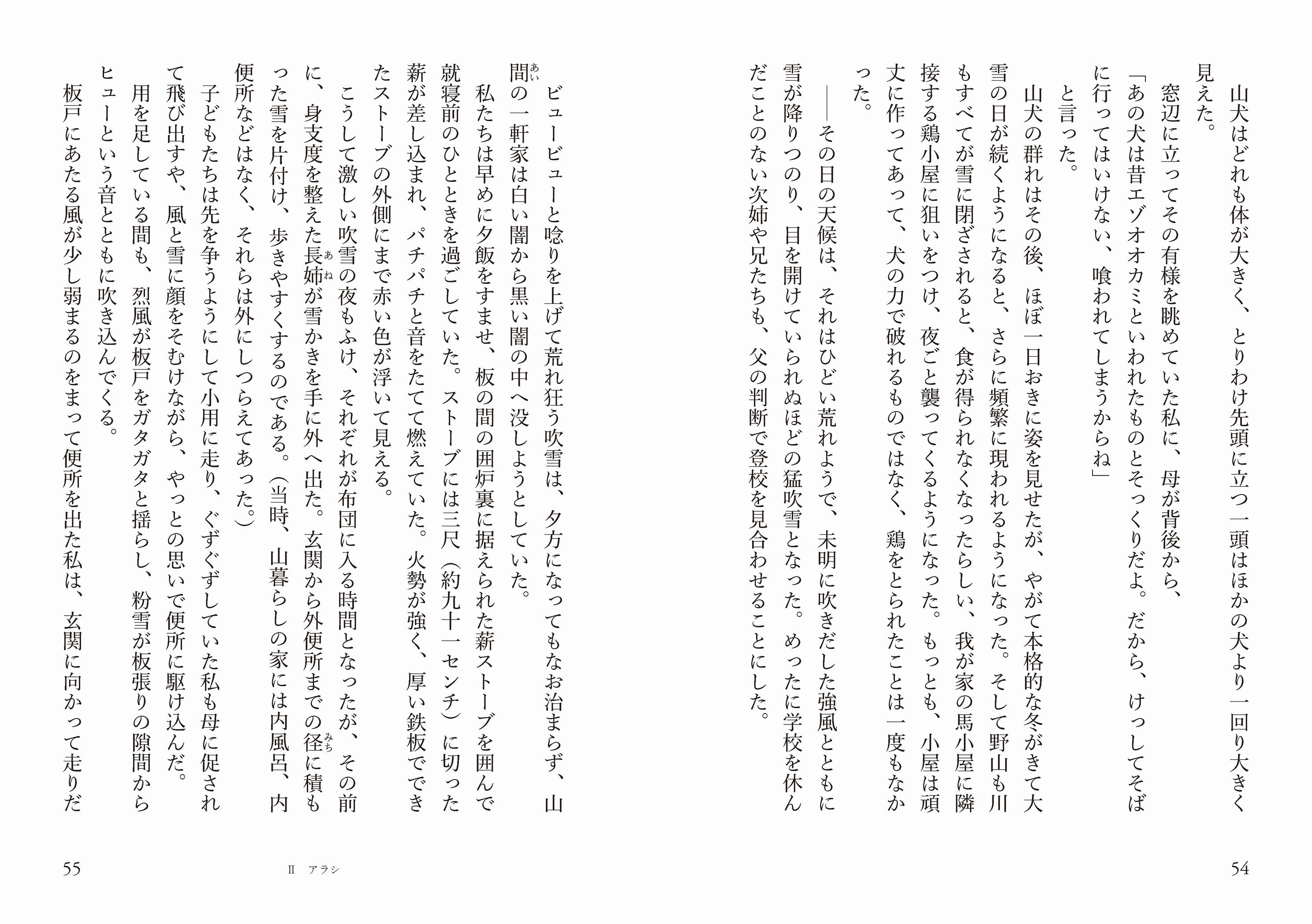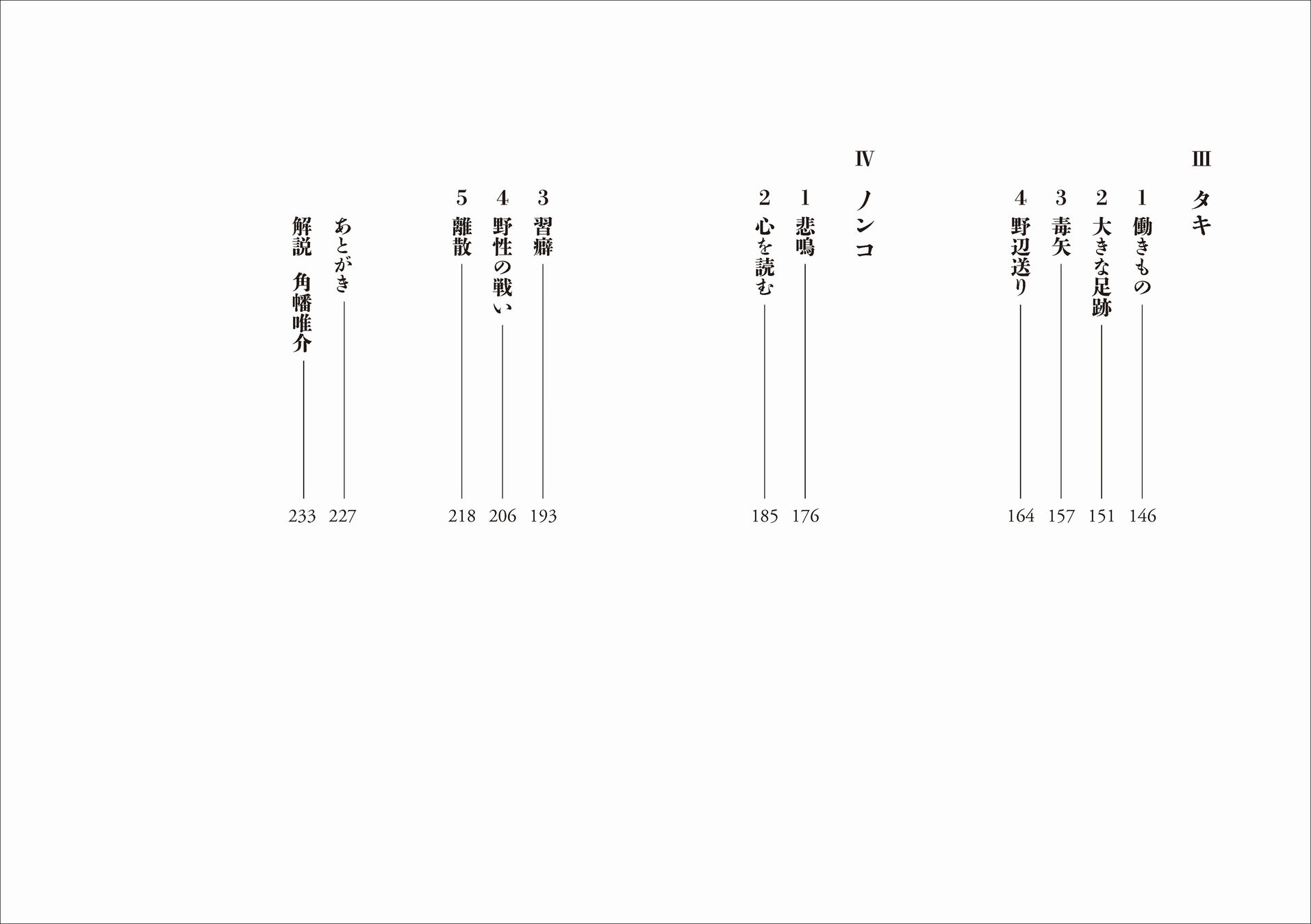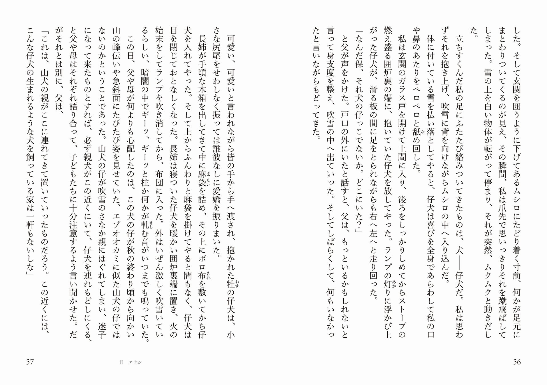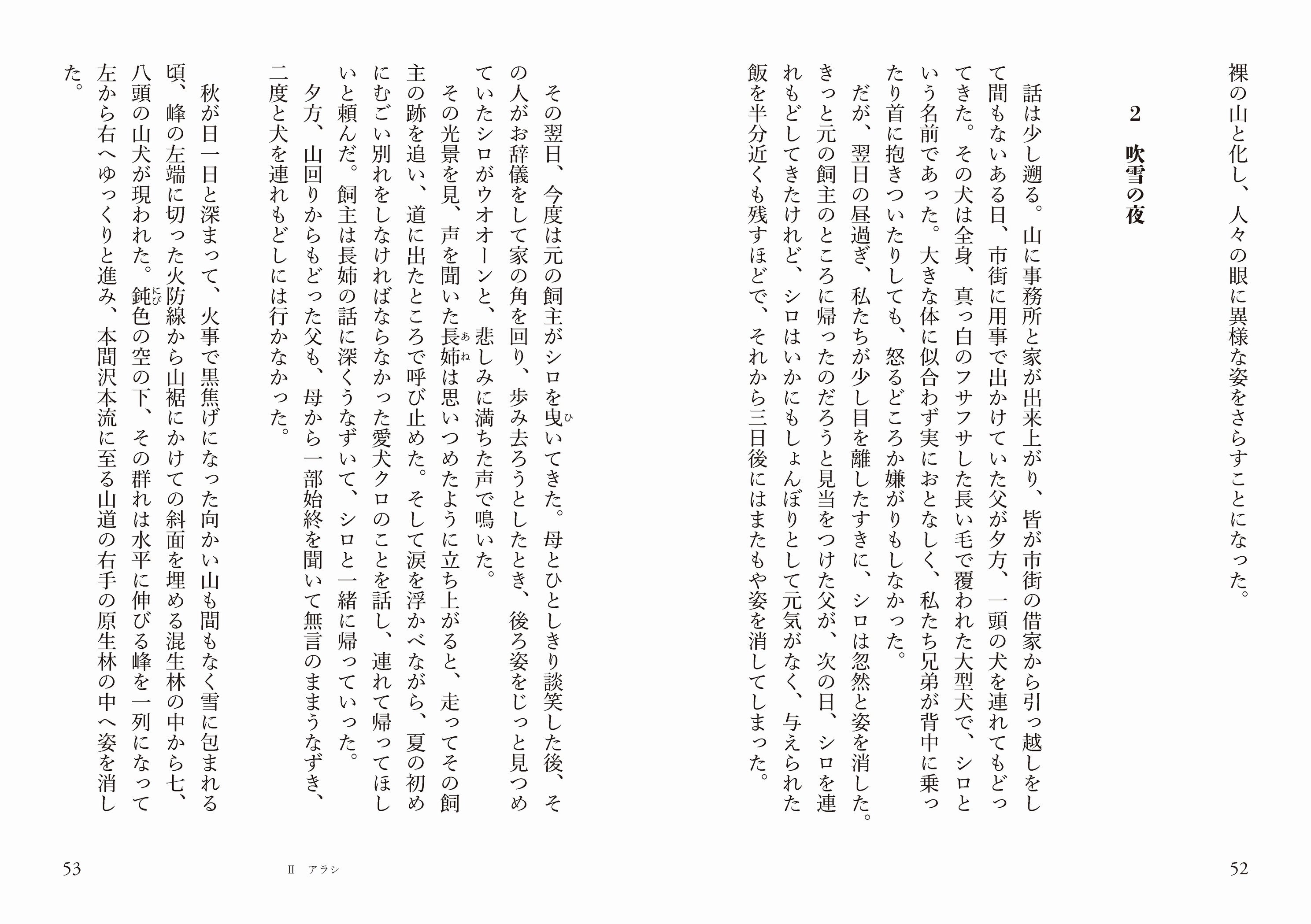 吹雪の夜に迷い込んできた山犬の仔は、過酷な北海道の原野を生き抜き、やがて仲間とともに山奥へ消えた――。