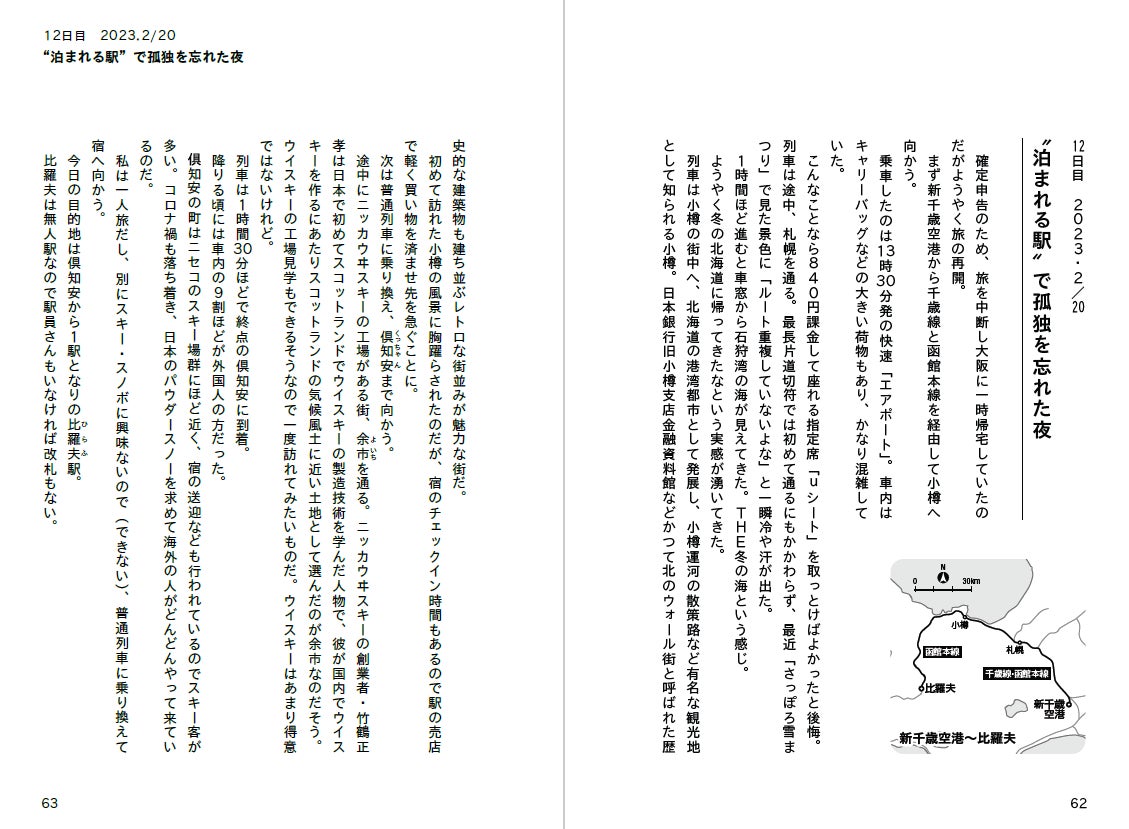 乗った列車の時刻や地図も紹介しているので行程が分かりやすく情景が浮かびやすいです。