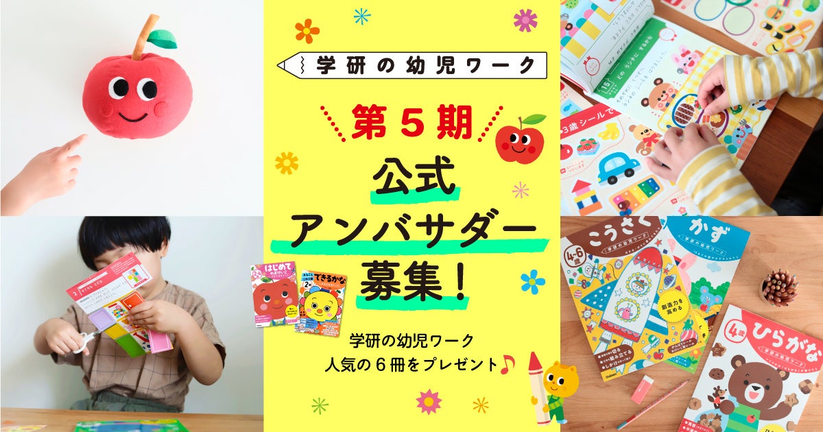 『学研の幼児ワーク』では、SNSで一緒に盛りあげてくださる、公式アンバサダーの第5期メンバーを大募集します! アンバサダーの方には、年齢に合った人気のワークをプレゼント!