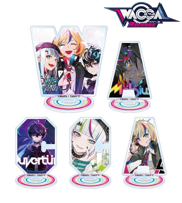 DIVE with Ü、Möbius、Ouvertüre、with U、Let you DIVE! の楽曲ジャケットイラストをアクリルスタンドに仕上げました。