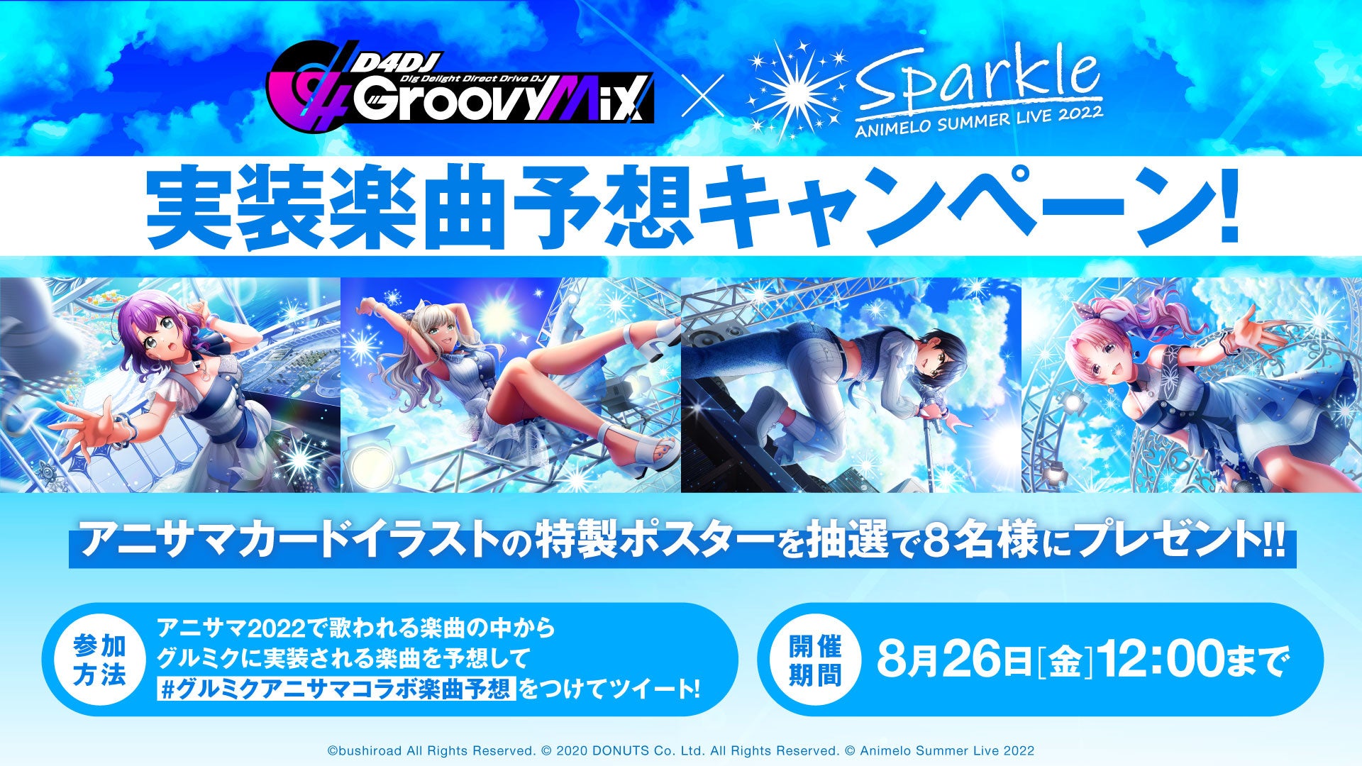 アニサマ2022にて歌われる楽曲の中からグルミクに実装される楽曲を #グルミクアニサマコラボ楽曲予想 を付けてツイートしていただけた方の中から抽選で8名様にアニサマコラボカードイラストを使用した特製ポスターをプレゼントいたします。